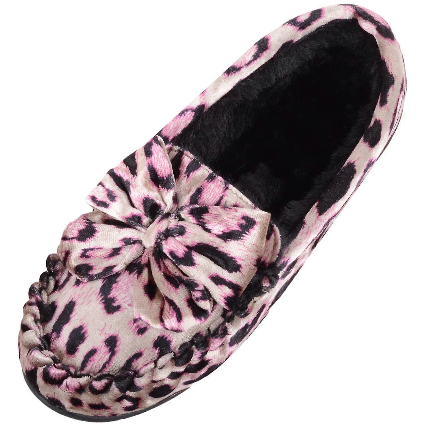 Absolute Footwear Slip On Animal Print Bow Design Moccasin Style Slippers