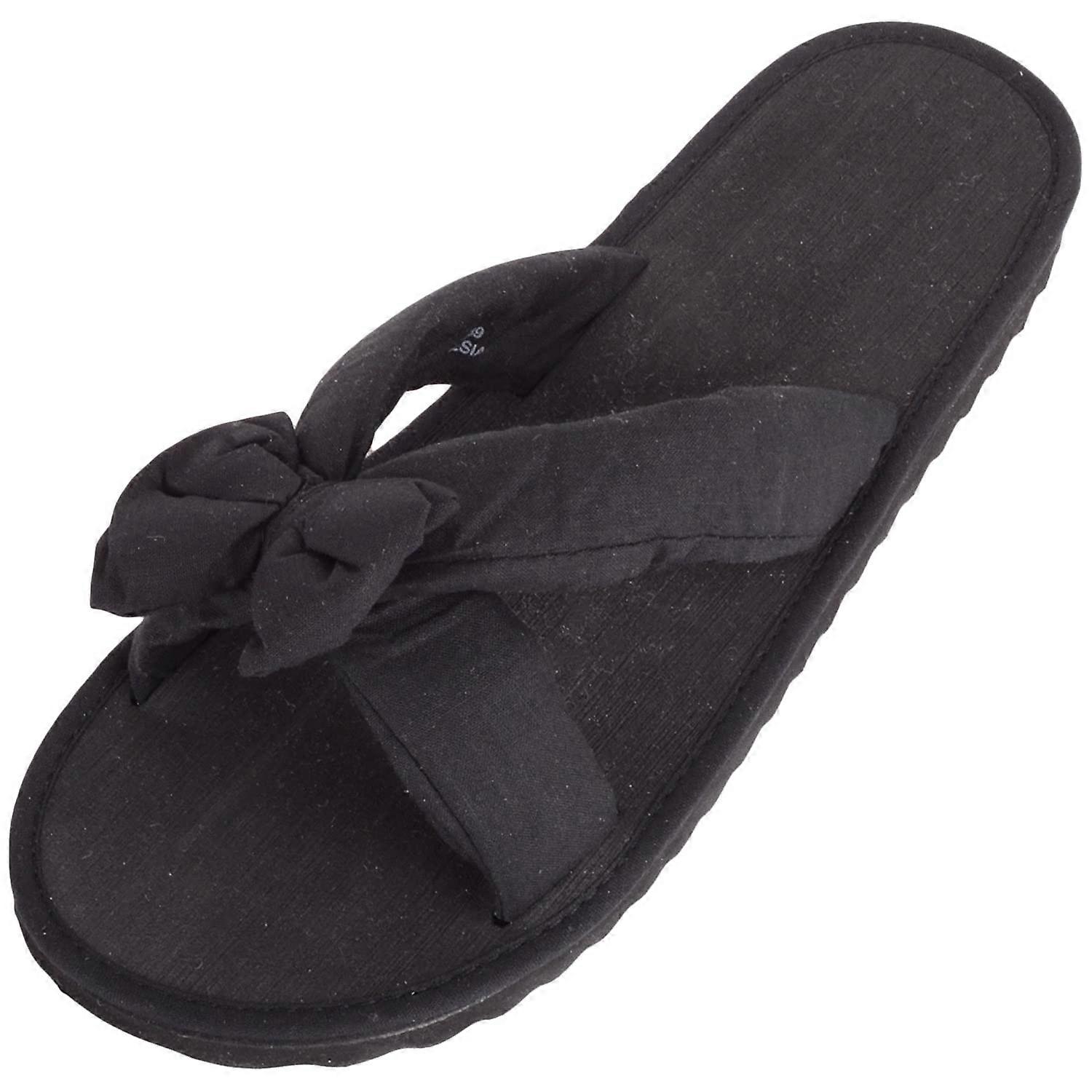 Womens Slip On Summer Holiday Beach Sea Pool Slider Sandals with Bow Design. Sizes: UK 3 - 8. Lightweight Textile Uppers. Texile Inners with Padded Insole for Extra Comfort. Hardwearing Lightweight Ridged Sole for Grip and Comfort. Slip On Open Back Peep Toe Design. Bow Design on the Front.