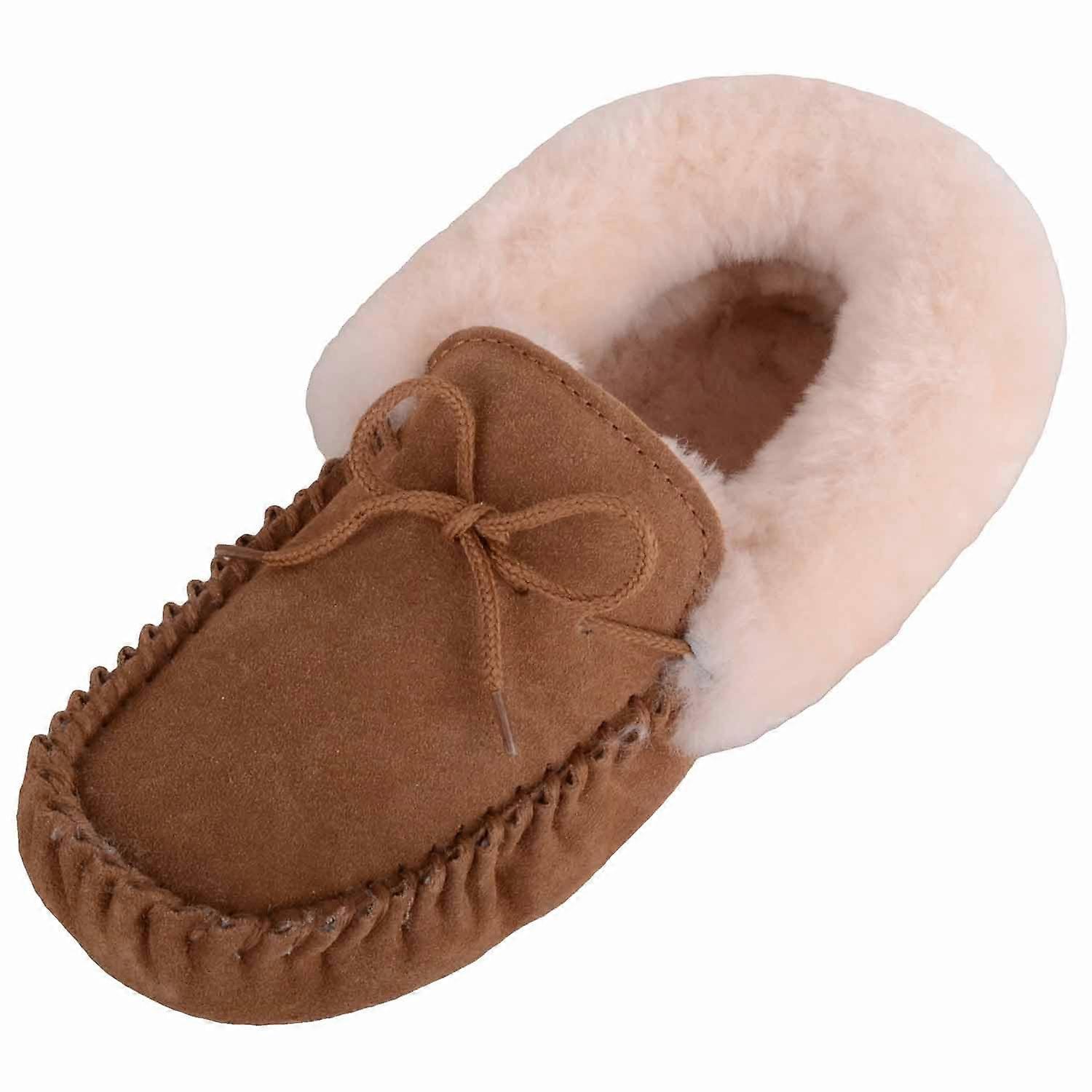 SnugRugs Genuine Sheepskin Lined Moccasin Slipper with Soft Sole