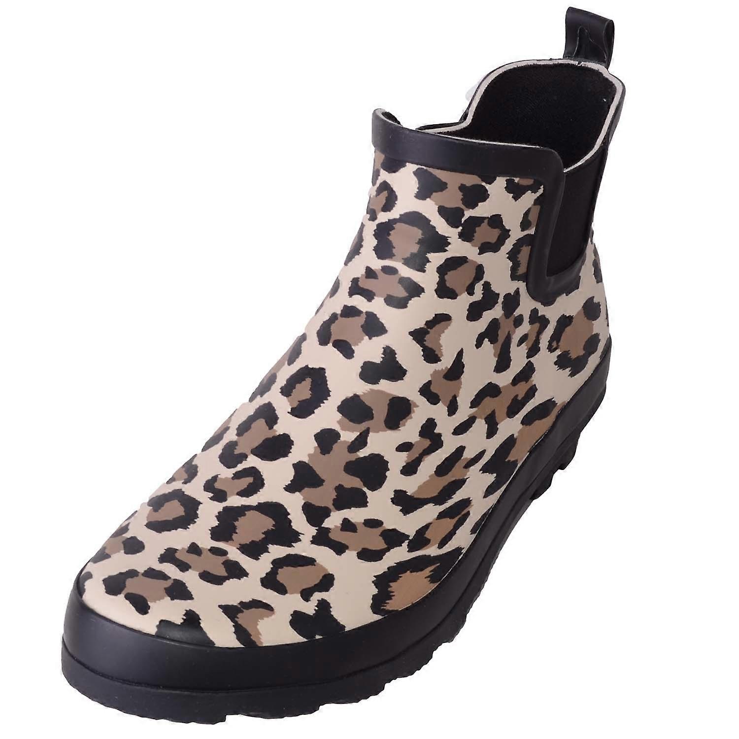 Absolute Footwear Easy Slip On Leopard Print Waterproof Ankle Wellington Boots