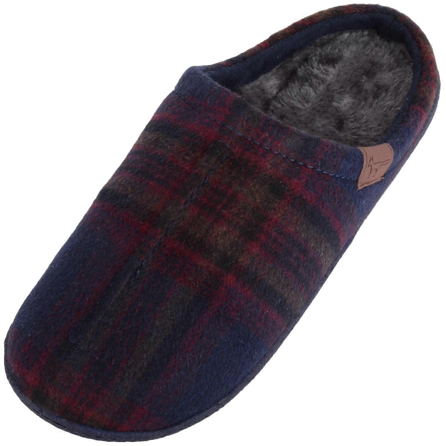 Absolute Footwear Slip On On Back Traditional Tartan Checked Fleece Lined Mule Slipper