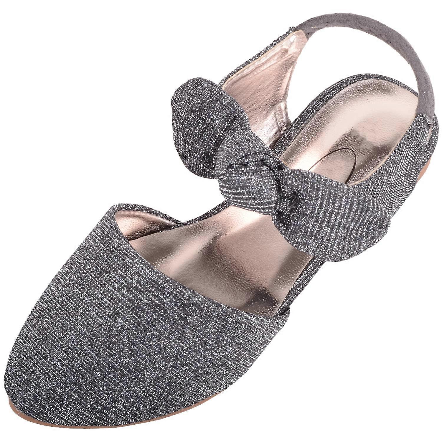 Absolute Footwear Childrens Kids Easy SlipOn Elasticated Party Glitter Bow Smart Sandals
