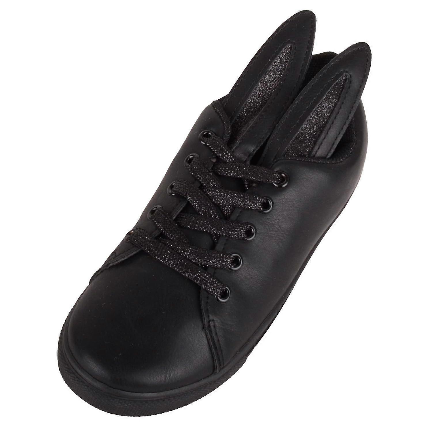 Absolute Footwear Childrens Faux Leather Lace Up Trainers Sneakers with Bunny Ears