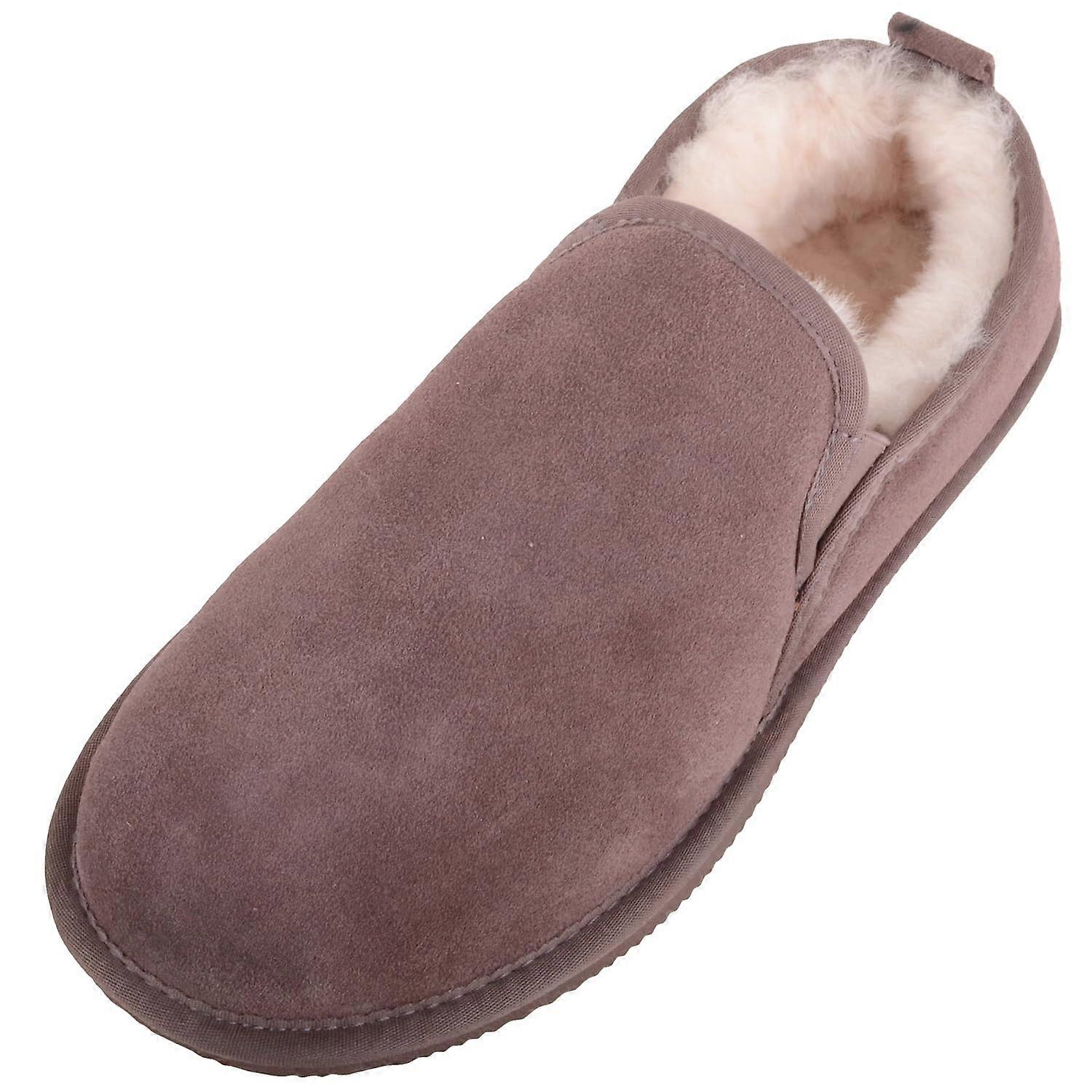 Absolute Footwear Mens Sheepskin Lined Suede Slipper with Elasticated Twin Gusset