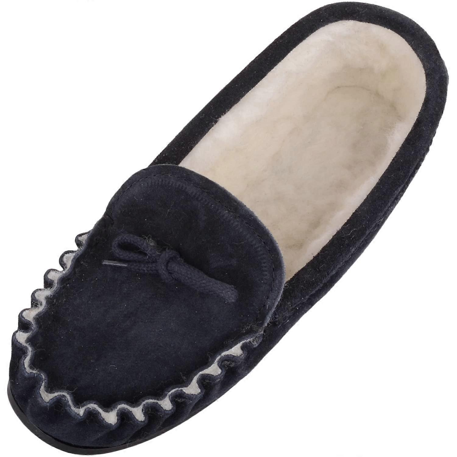 SnugRugs Slip On Suede Moccasin Slippers with Wool Lining and Rubber Sole. Made in UK.