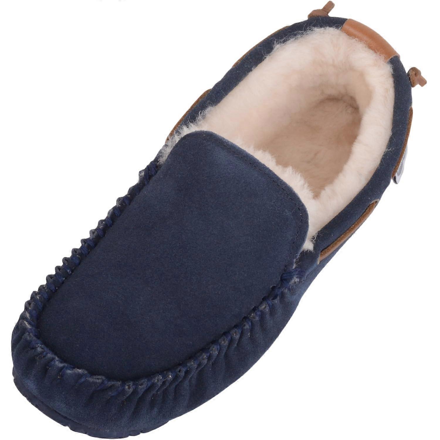 SNUGRUGS Freddie, Mens Genuine Sheepskin Loafer Slipper. Sizes: UK 7 - 13. Smooth Cow Suede Outer. Super Soft Sheepskin Inner for Extra Warmth and Comfort. Hardwearing Snugrugs Rubber Sole for Grip and Comfort. Easy Slip On Style.
