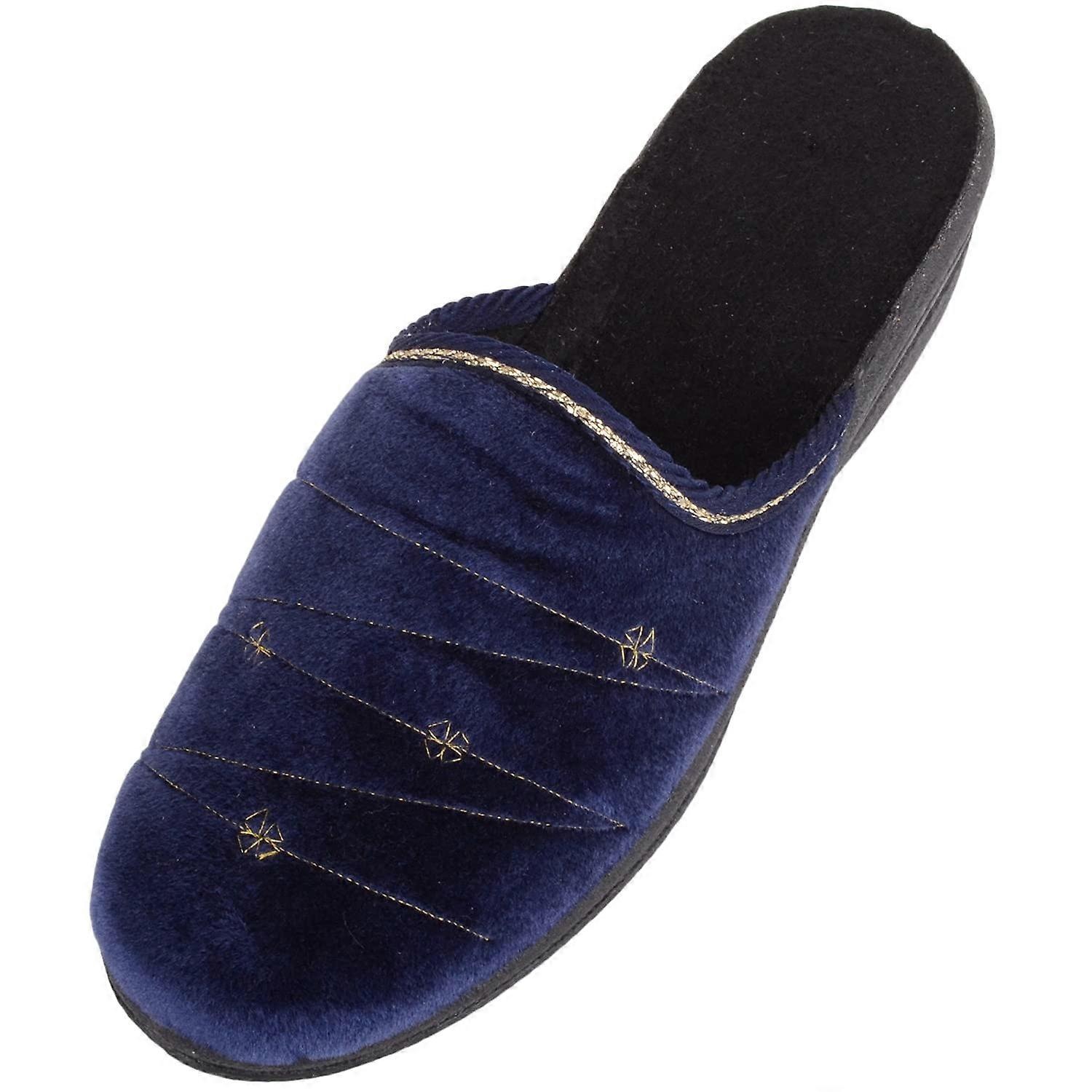 Absolute Footwear Slip On Open Back Mule Style Embroided Velour Slippers
