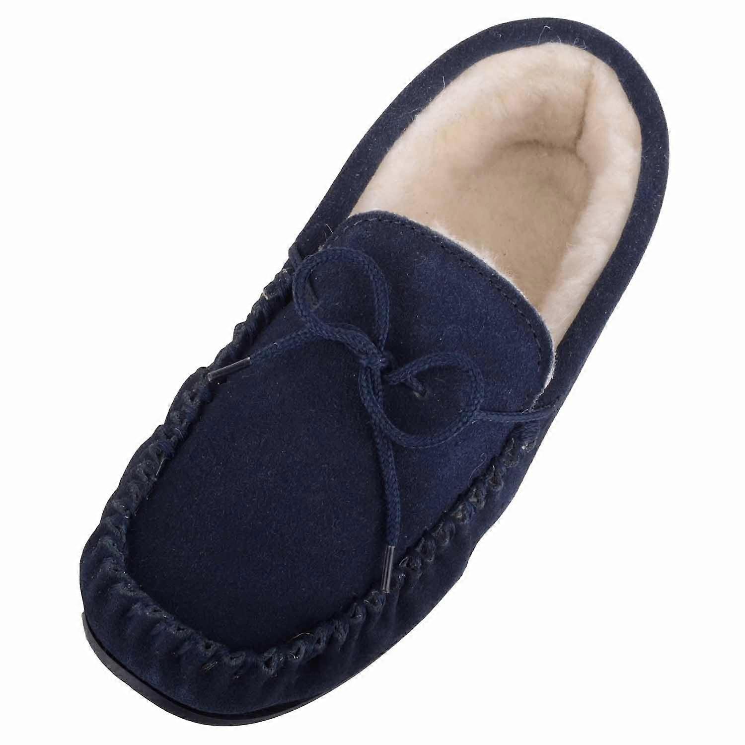 Absolute Footwear Mens Wool Lined Suede Moccasin with Lace Detail and Rubber Sole