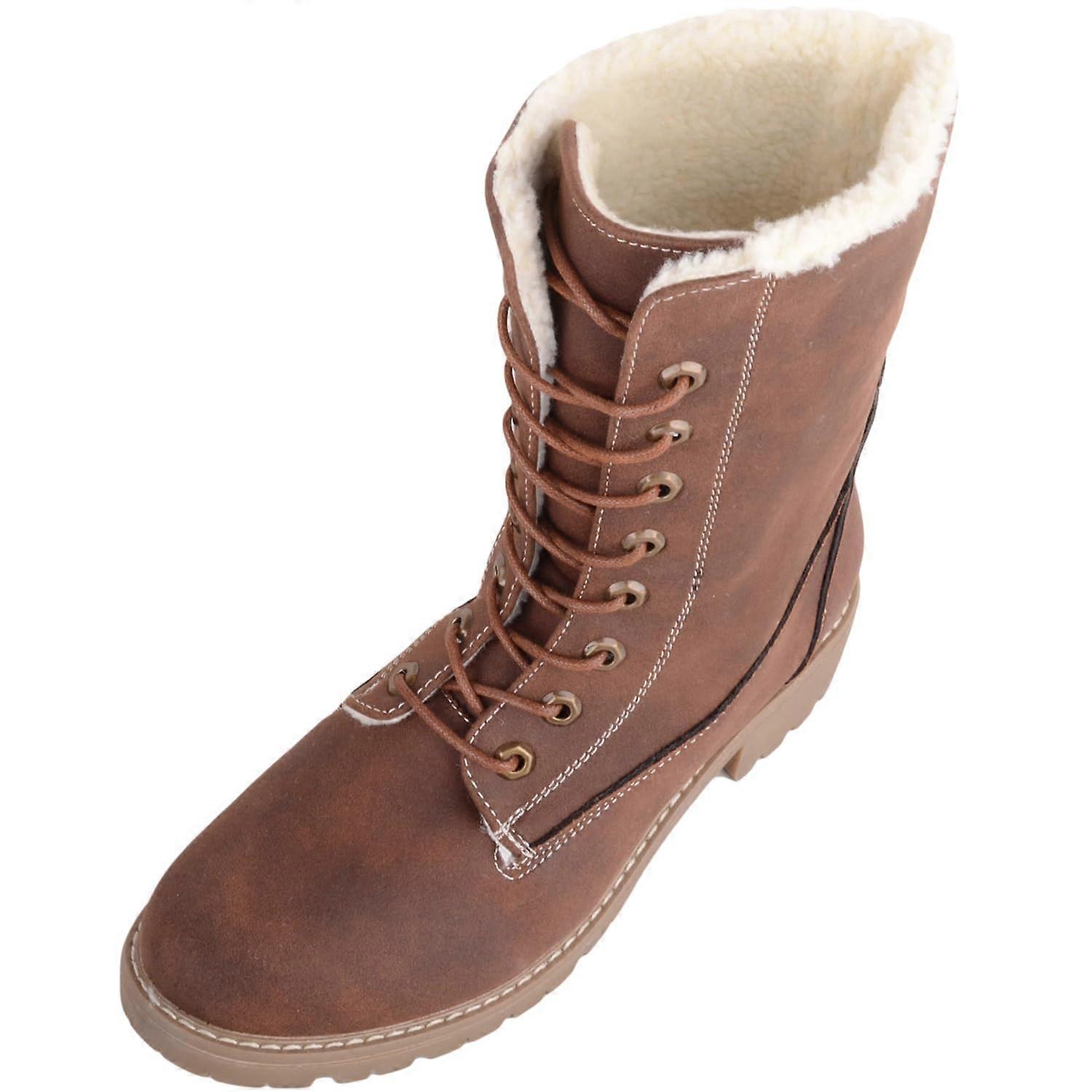Absolute Footwear Stylish Faux Suede Block Heel Lace Up Calf Boot