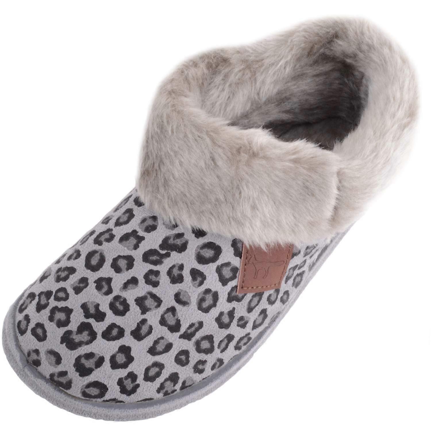 Absolute Footwear Womens Slip On Leopard Print Bootie Slippers, Faux Fur Lining & Cuff