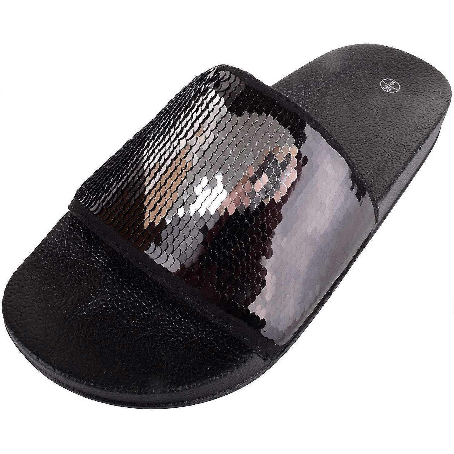 Absolute Footwear Slip On Casual Summer Holiday Mule Sliders Sandals with Sequin Design