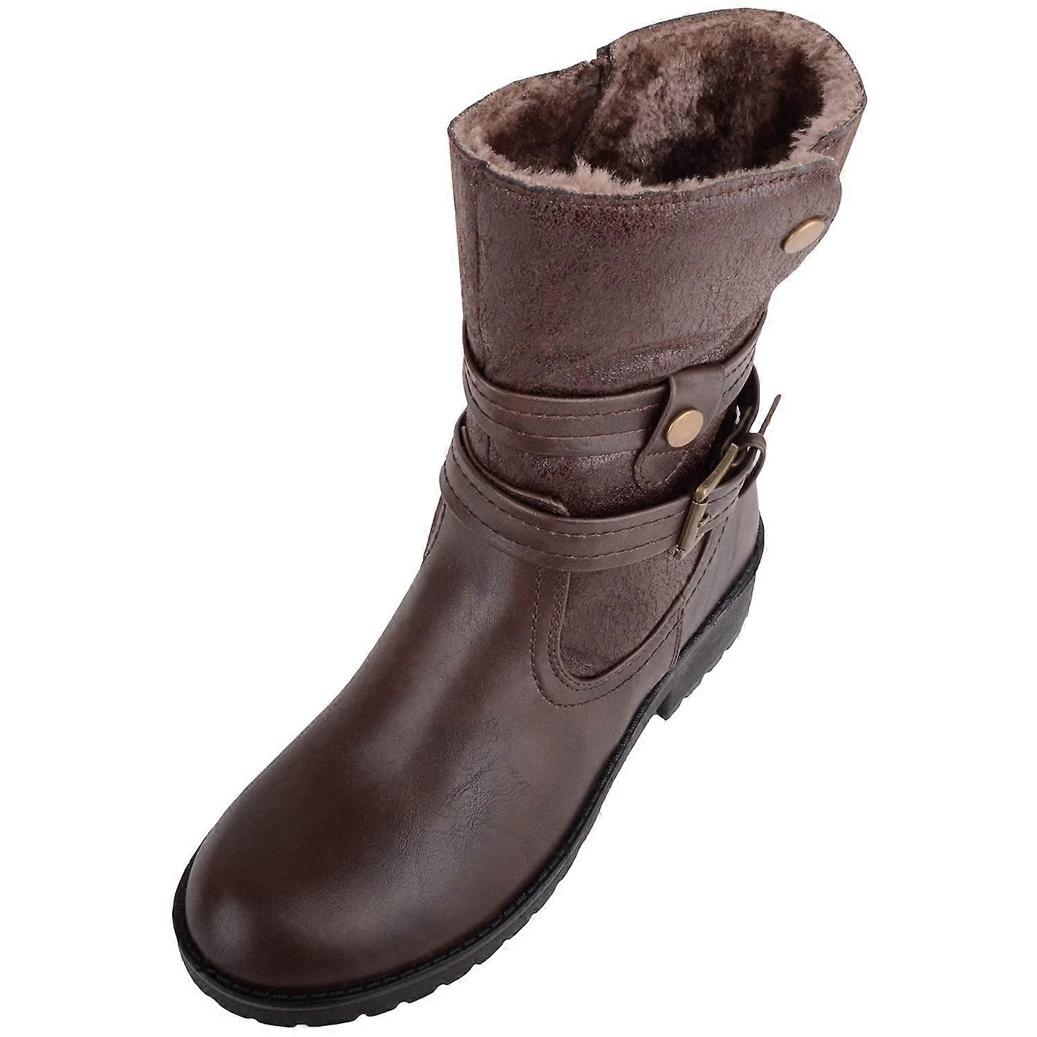 Absolute Footwear Chunky Soled Fleece Lined Faux Leather Ankle Boot with Inside Zip