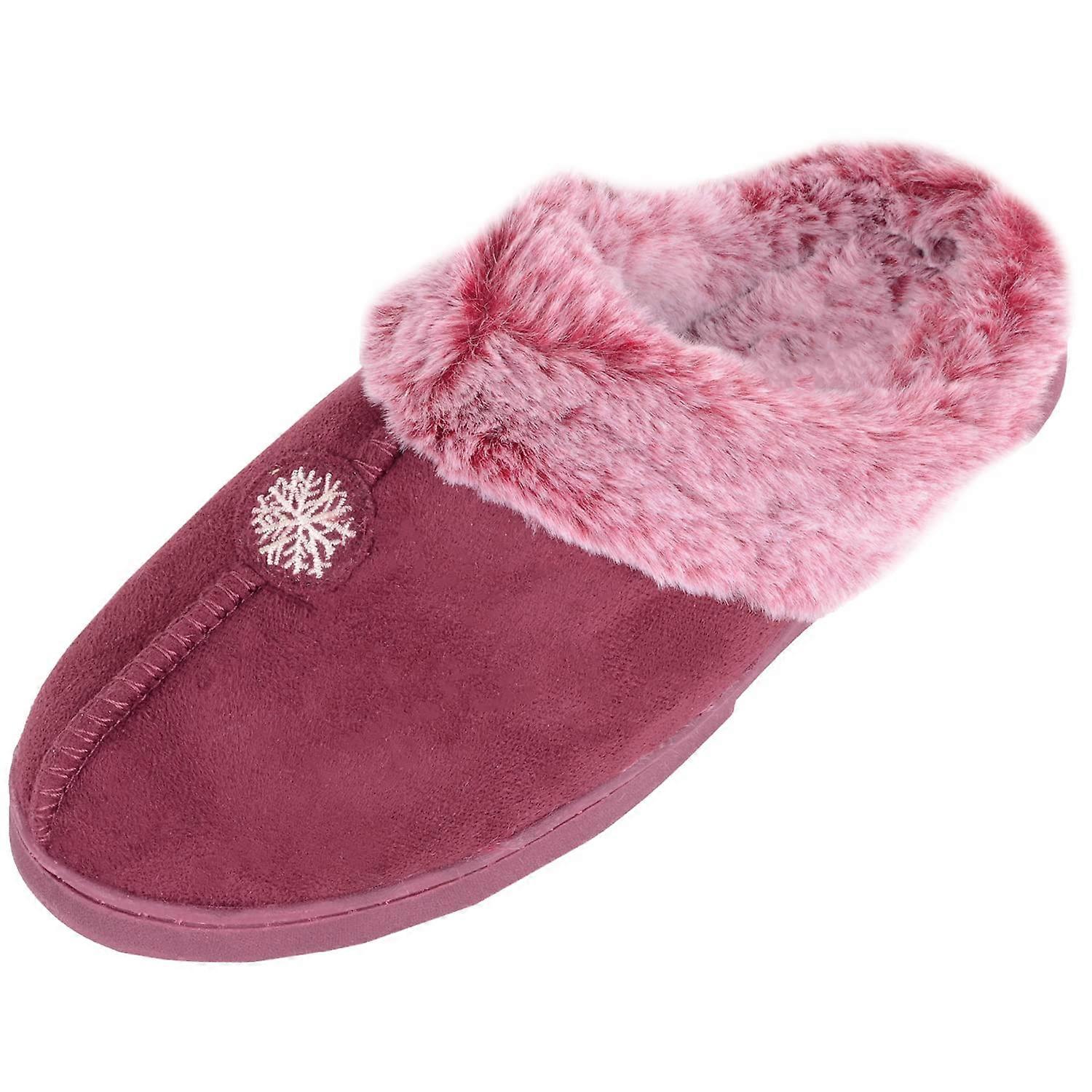 Absolute Footwear Slip On Faux Fur Open Back Mule Slippers with Snowflake Design