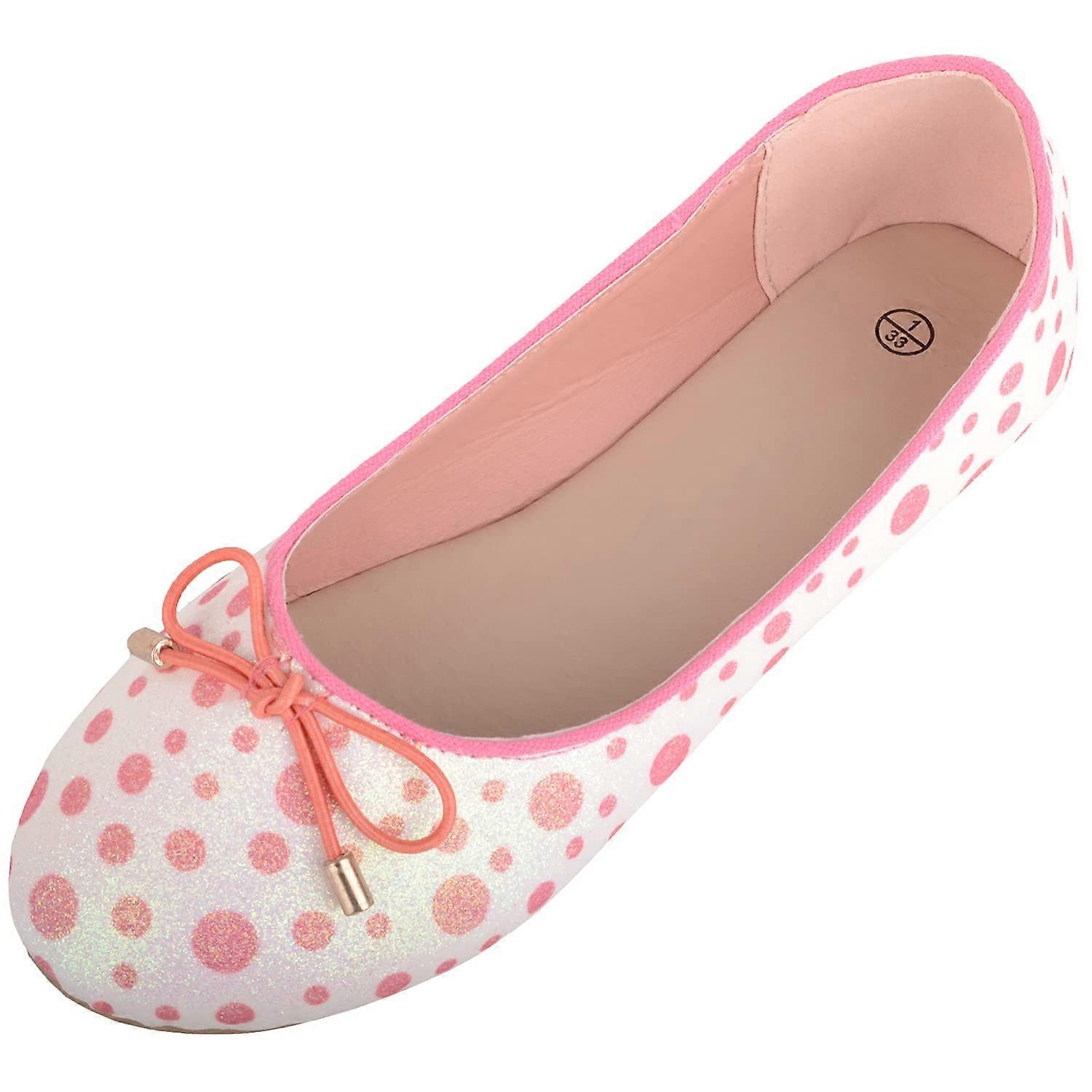 Absolute Footwear Childrens Kids Slip On Glitter Polka Dot Ballerina Style Dolly Shoes