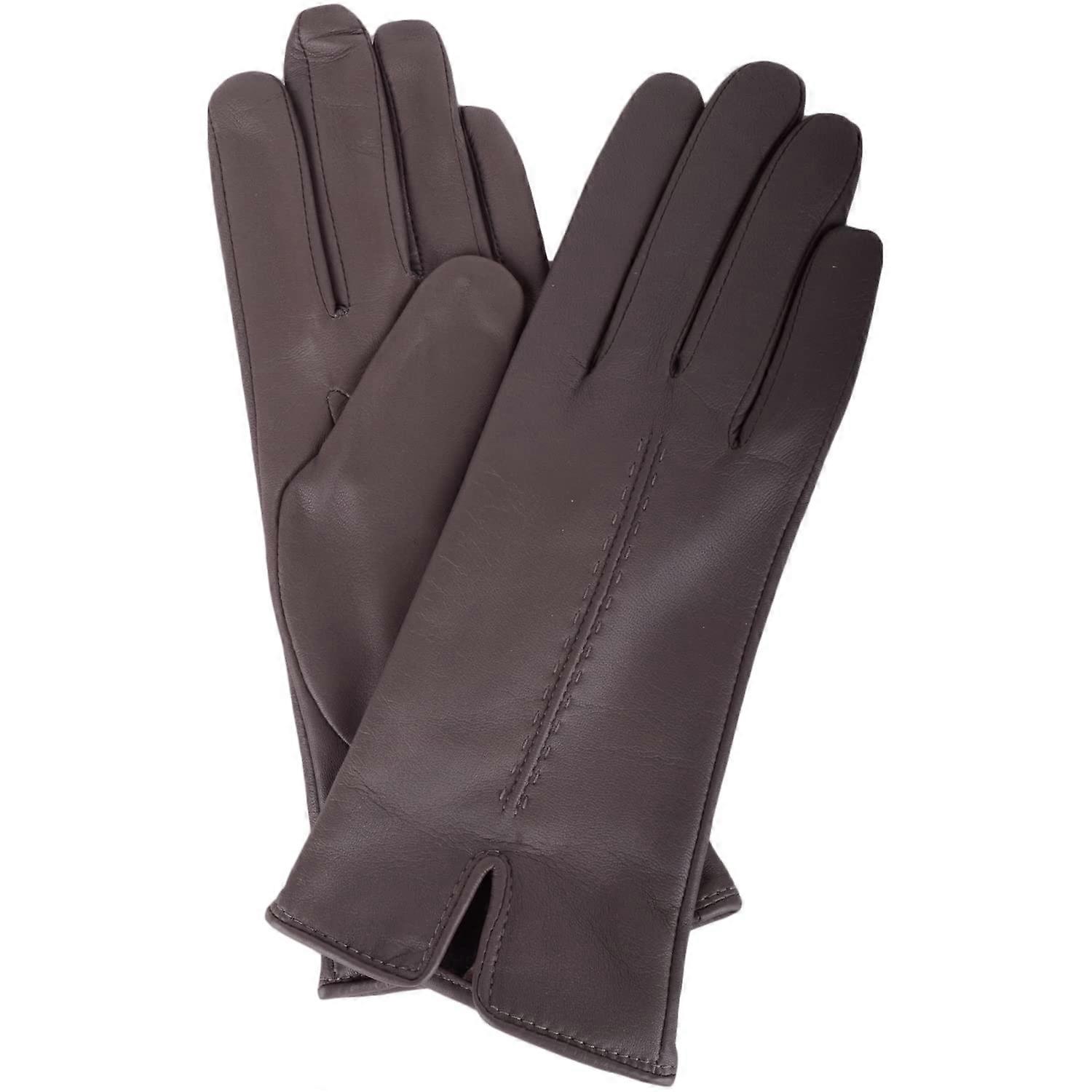 SNUGRUGS Womens Soft Leather Winter Glove with Single Point Stitch Detail. Sizes: Small (6.5"), Medium (7"), Large (7.5"), Extra Large (8"). Genuine Soft Leather Outer. Smooth Soft Fleece Inner. Single Stitch Detailing on the Front.