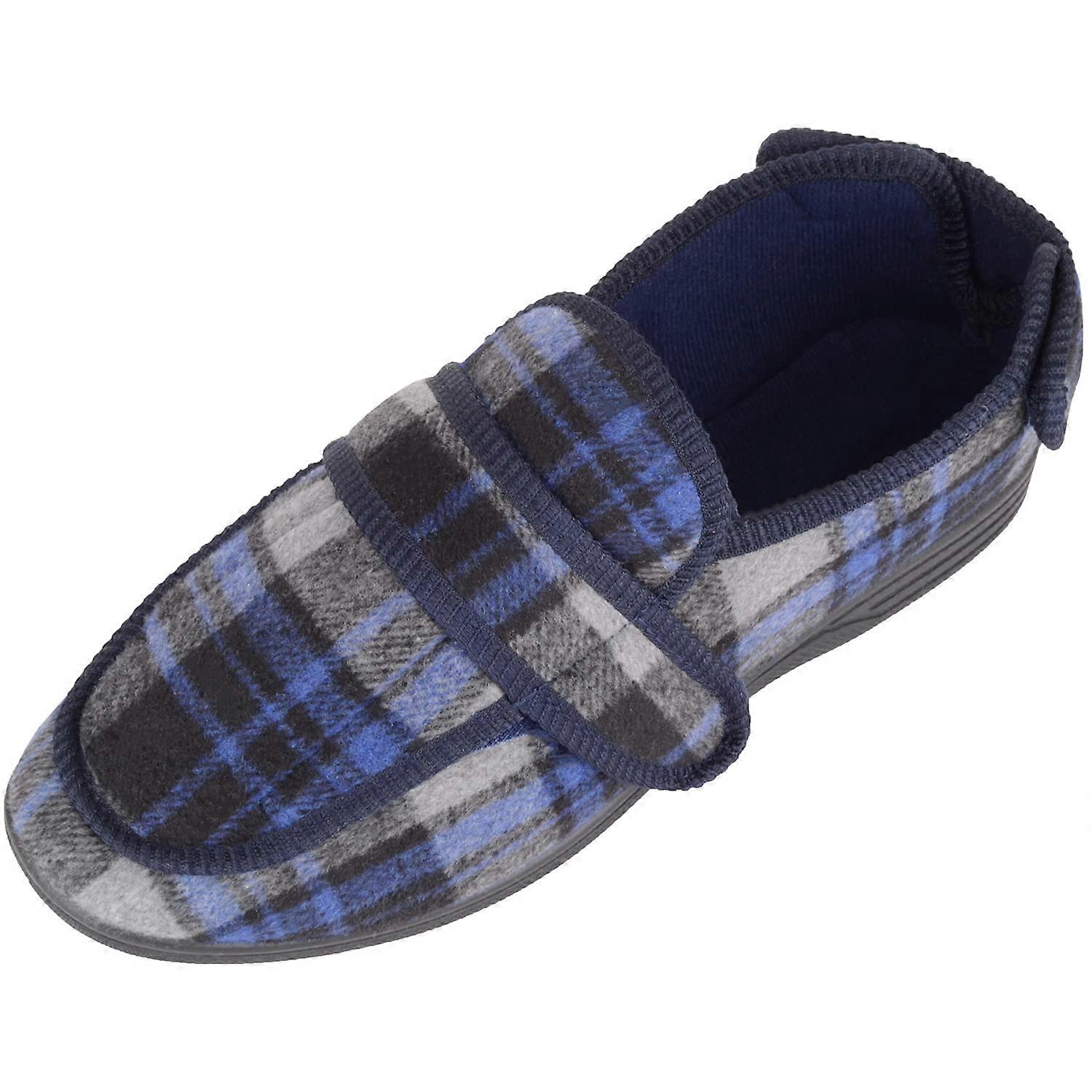 Absolute Footwear Slip On Touch and Close Checked Winter Slipper with Wide Opening