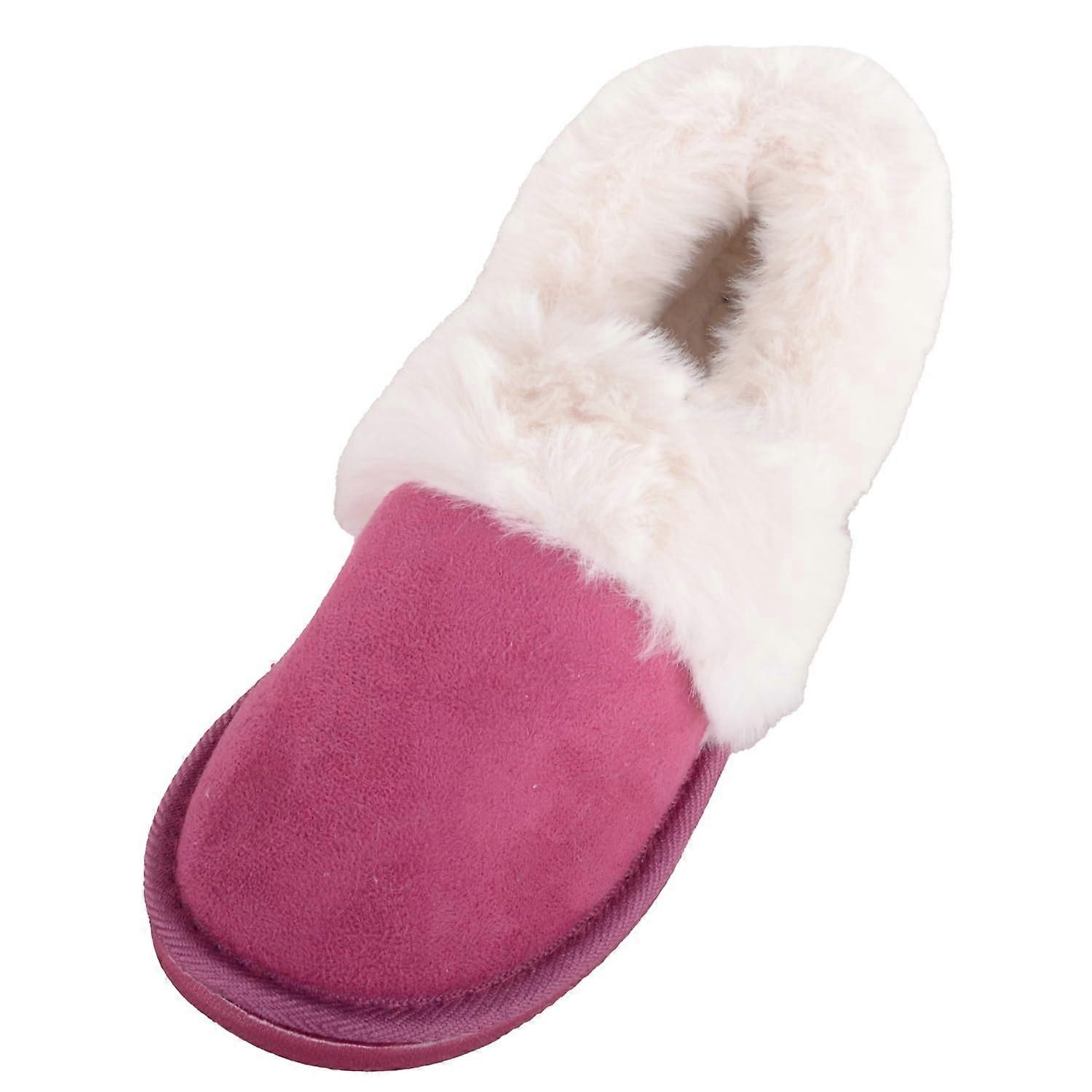 Absolute Footwear Womens Easy Slip On Bootie Slipper with Thick Faux Fur Collar