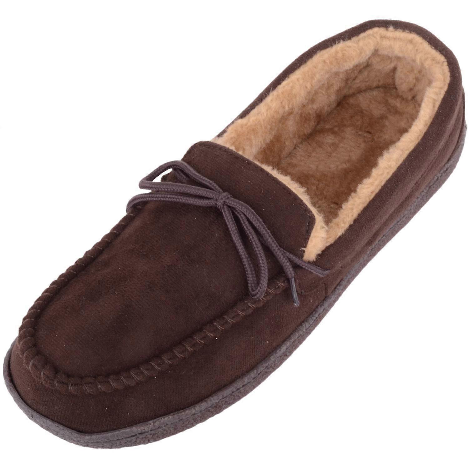 Absolute Footwear Slip On Moccasin Style Slipper with Fleece Lining and Lace Up Design