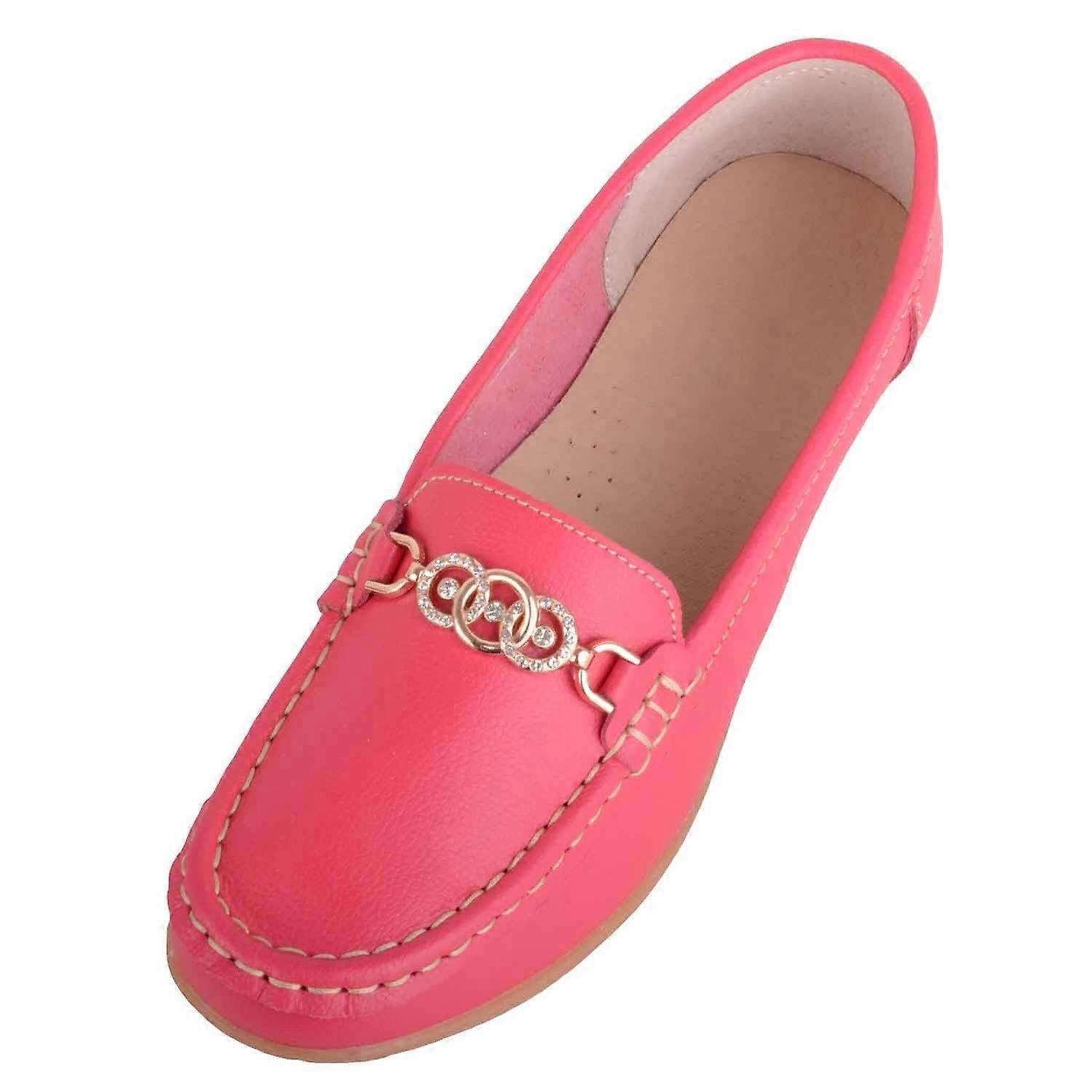 Absolute Footwear Womens Genuine Leather Easy Slip On Loafer Boat Shoe, Diamante Trim