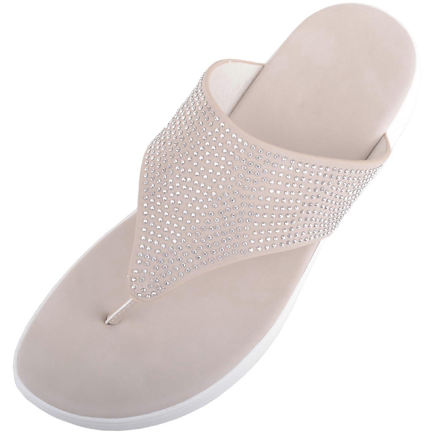 Absolute Footwear Womens Easy Slip On Toe Post Sandal, Front Diamante Jewelled Detail