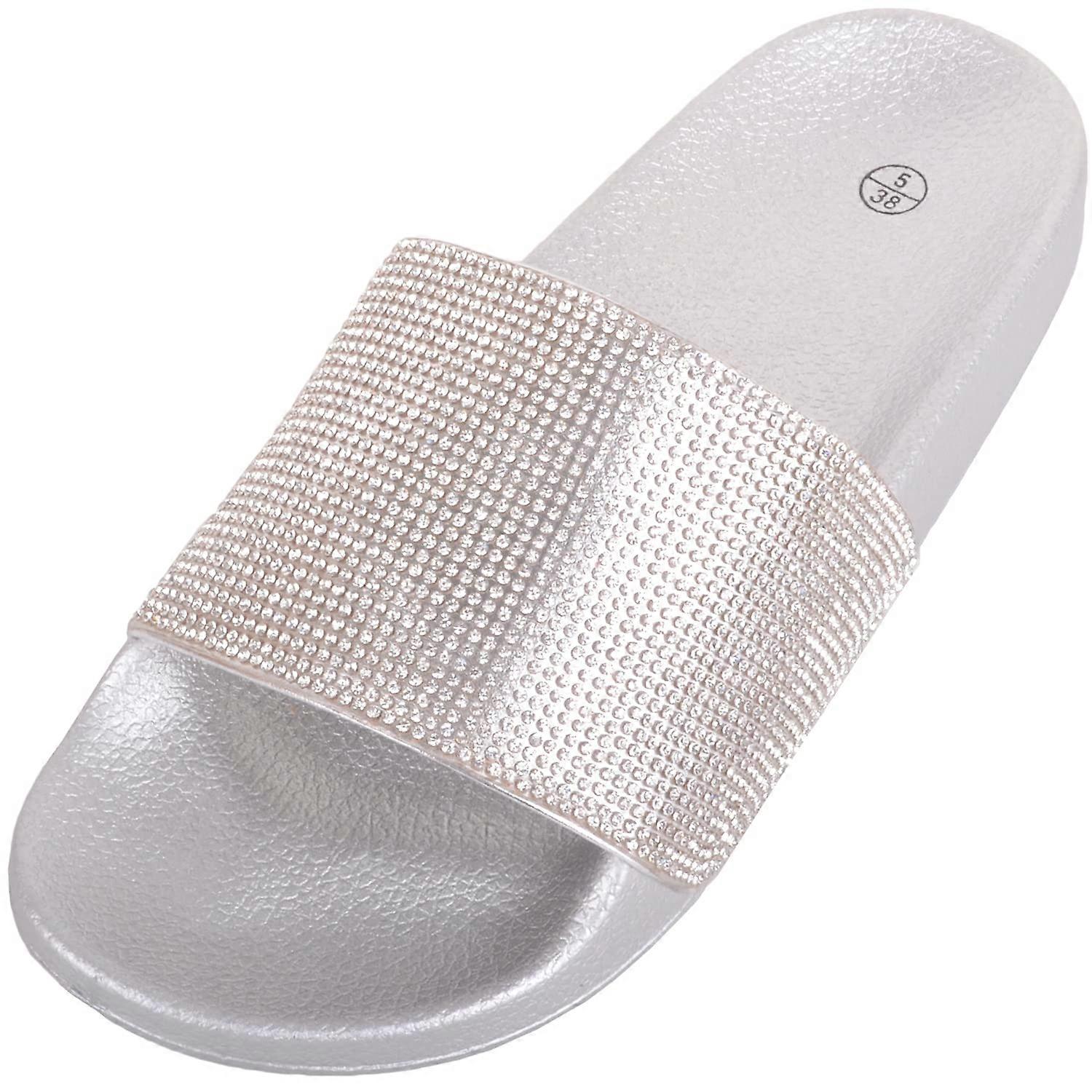 Absolute Footwear Womens Slip On Diamante Pattern Summer Open Back Mule Sliders Sandals