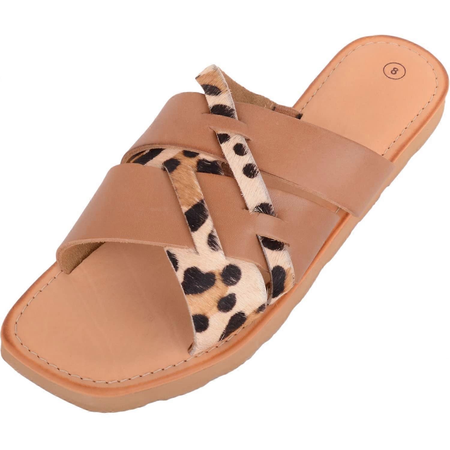 Absolute Footwear Genuine Leather Animal Print Slip On Mule Sandals Sliders