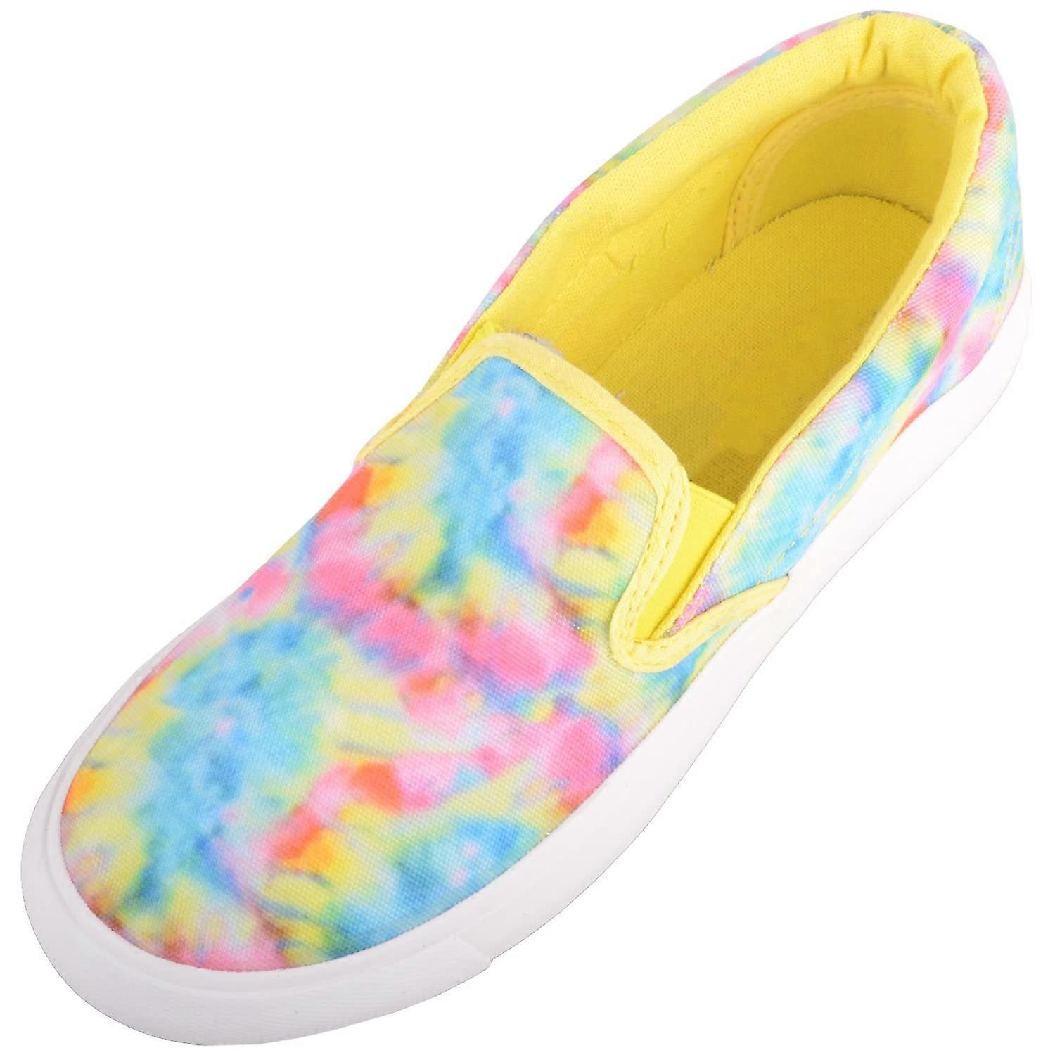 Absolute Footwear Childrens Kids Canvas MutliColour TieDye Summer Slip On Trainers Pumps