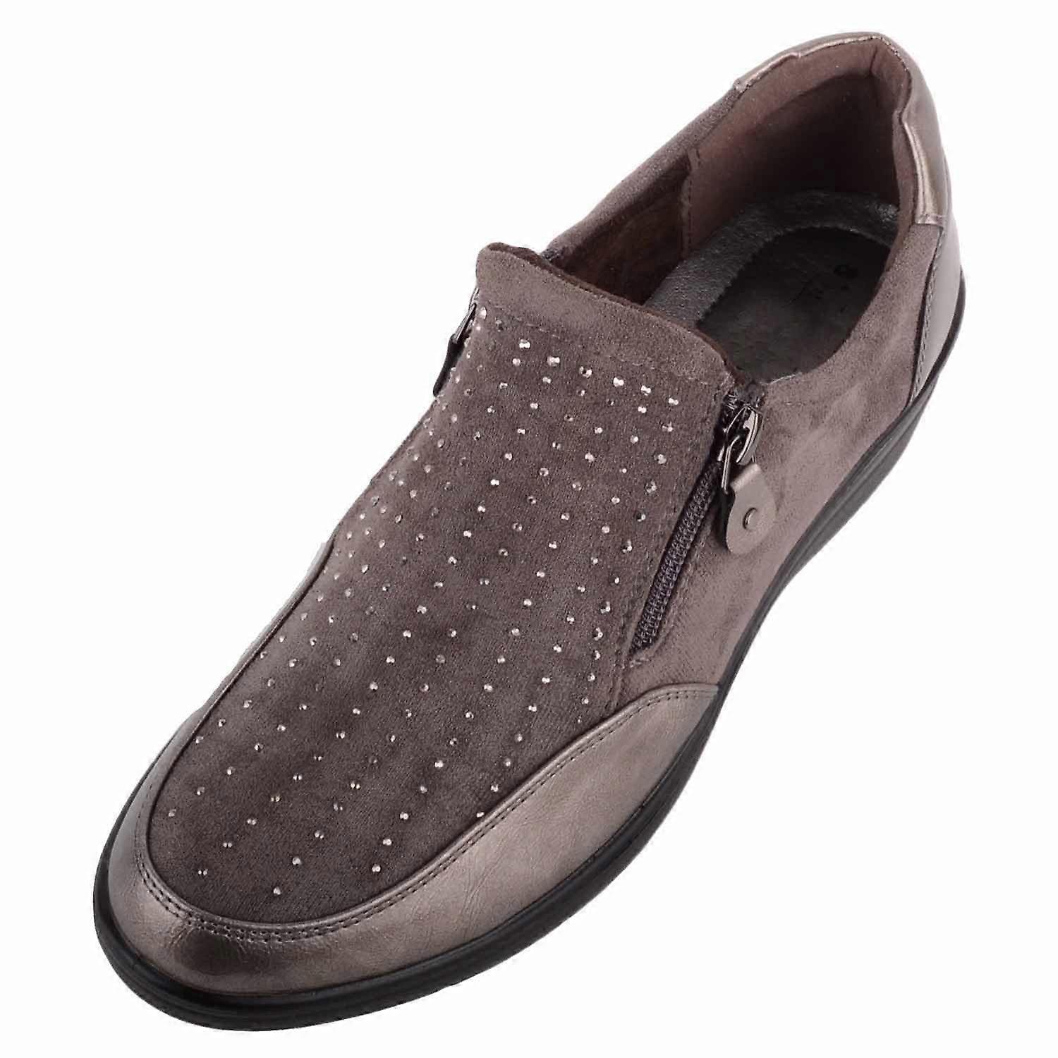 Absolute Footwear Womens Easy Slip On Casual Twin Zip Casual Shoe with Wedged Heel