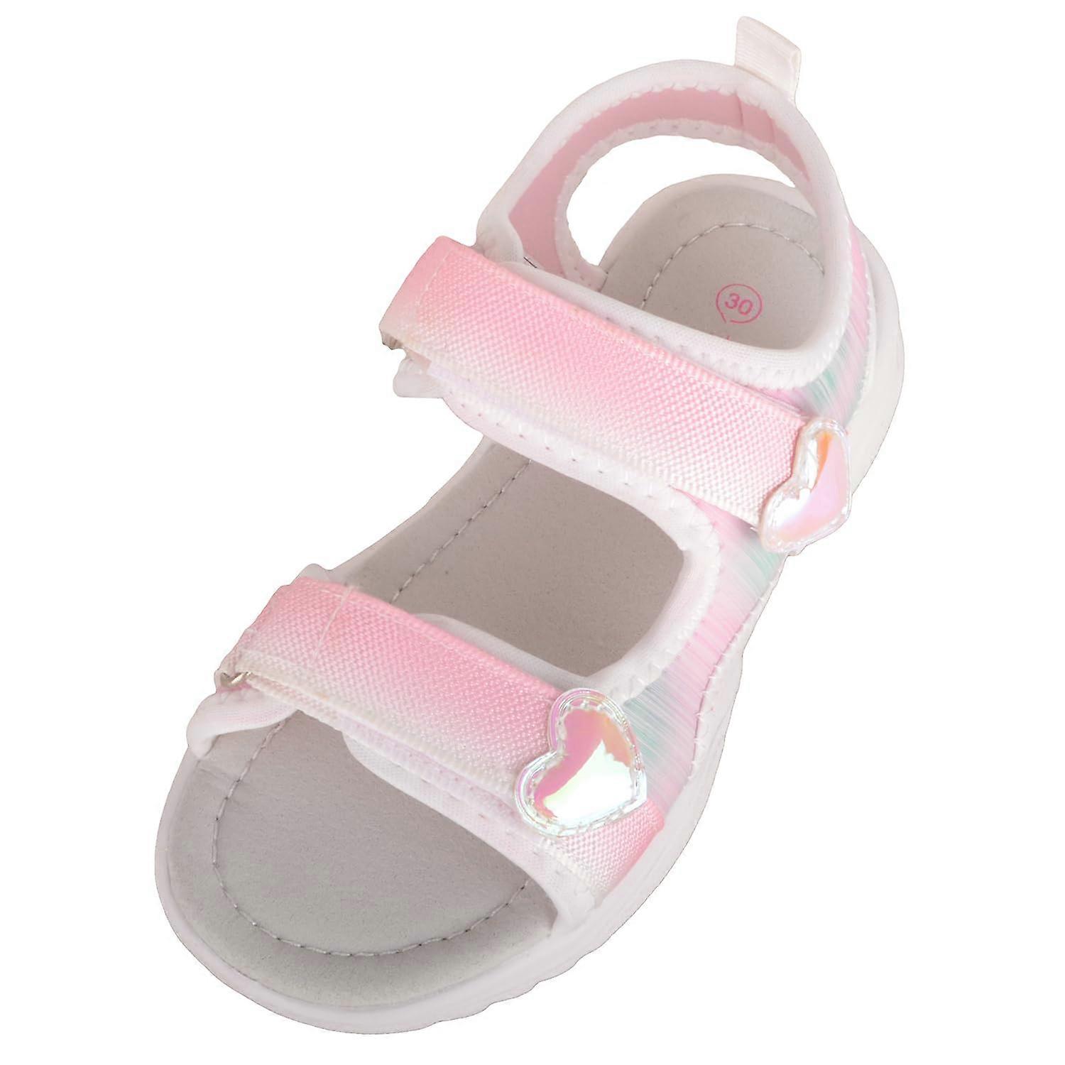 Childrens Infants Touch and Close Summer Sandals with Heart Design. Sizes: UK Infant 5 - Child 12. Synthetic Uppers. Synthetic Inners with Padded Insole for Extra Comfort. Hardwearing Outdoor Ridged Sole. Pull On Back Tab. Slip On Style with Double Touch and Close Fastening