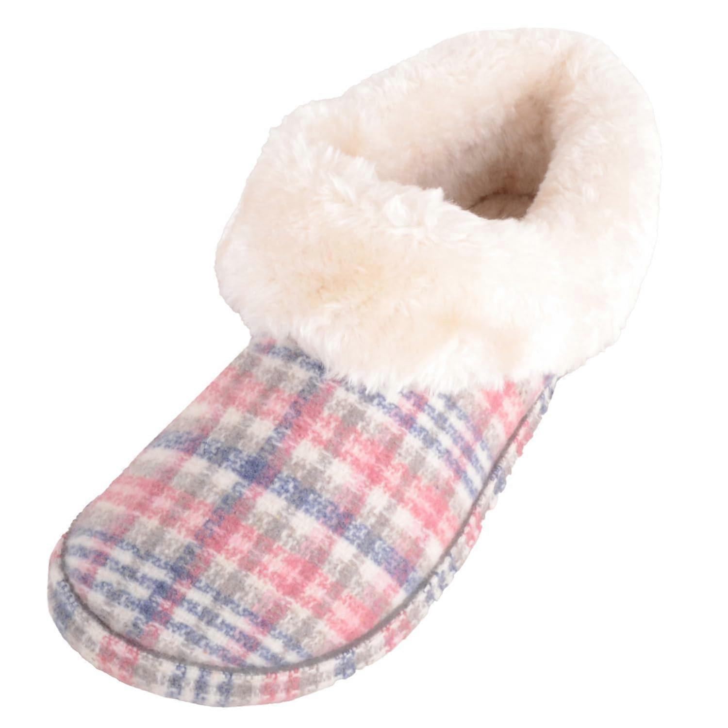 Absolute Footwear Womens Easy Slip On Tartan Checked Faux Fur Bootie Slipper