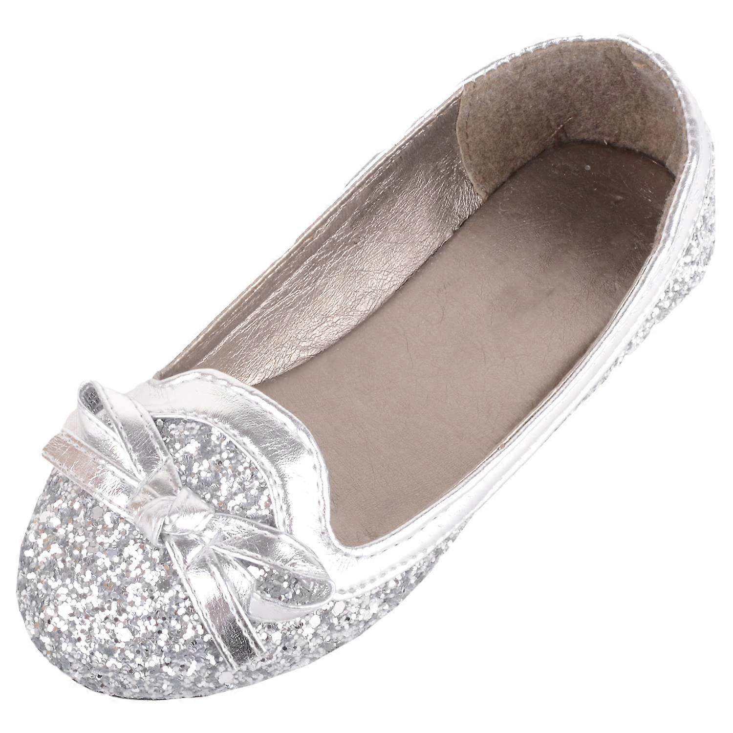 Absolute Footwear Childrens Kids Easy Slip On Glitter Bow Design Ballerina Pumps