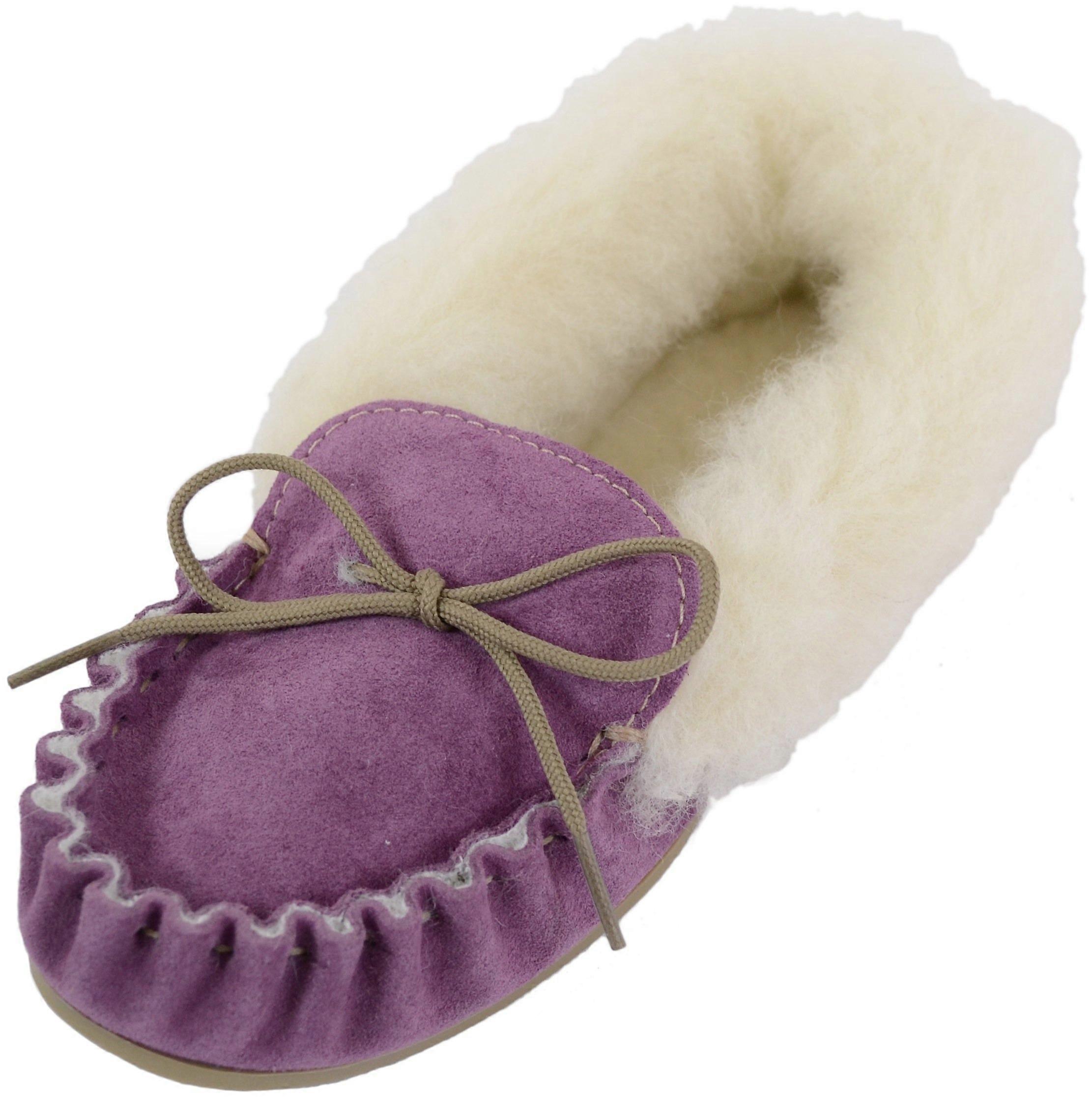 SnugRugs Slip On Suede Moccasins with Wool Cuff and Rubber Sole. Made in UK