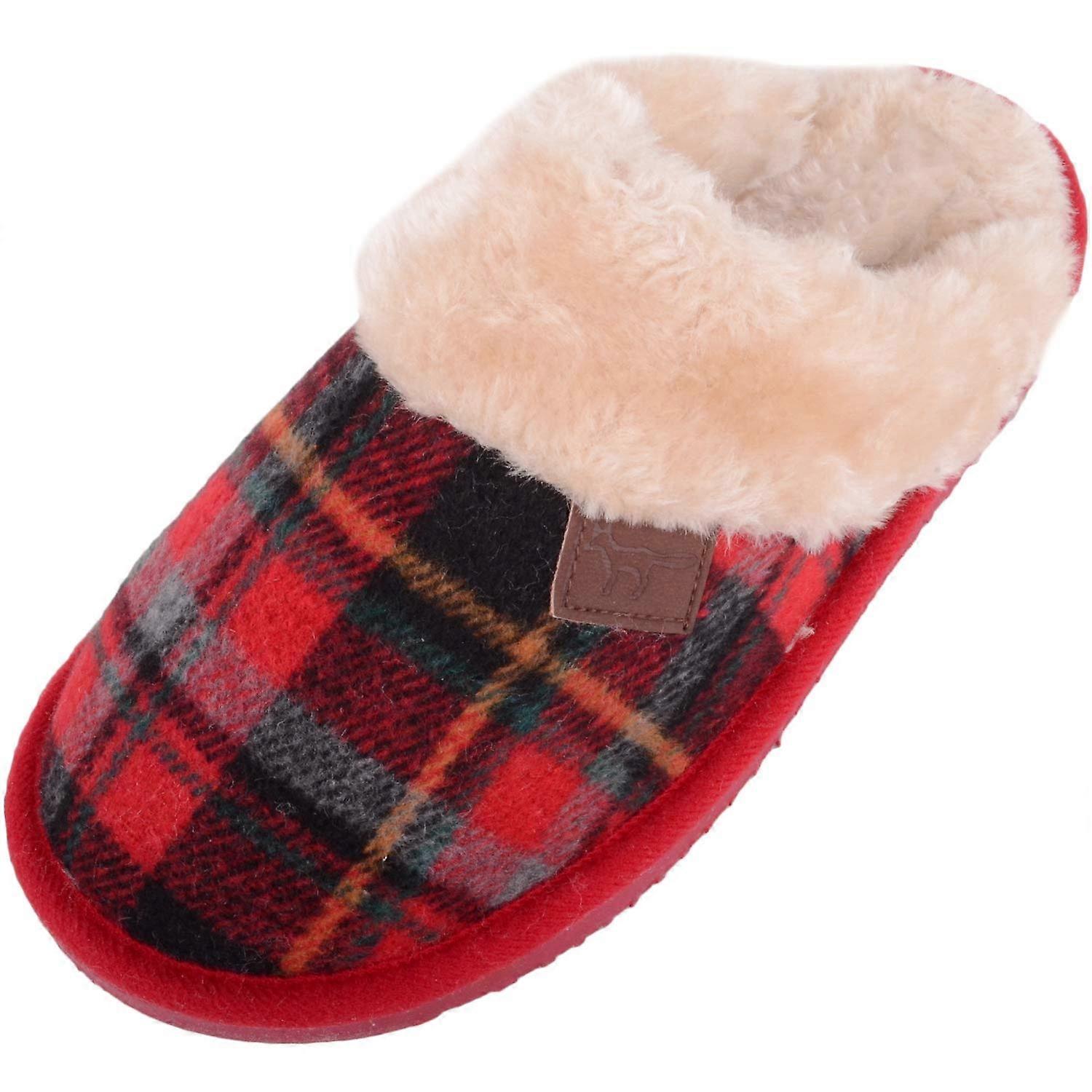 Absolute Footwear Slip On Open Back Traditional Tartan Checked Faux Fur Mule Slippers