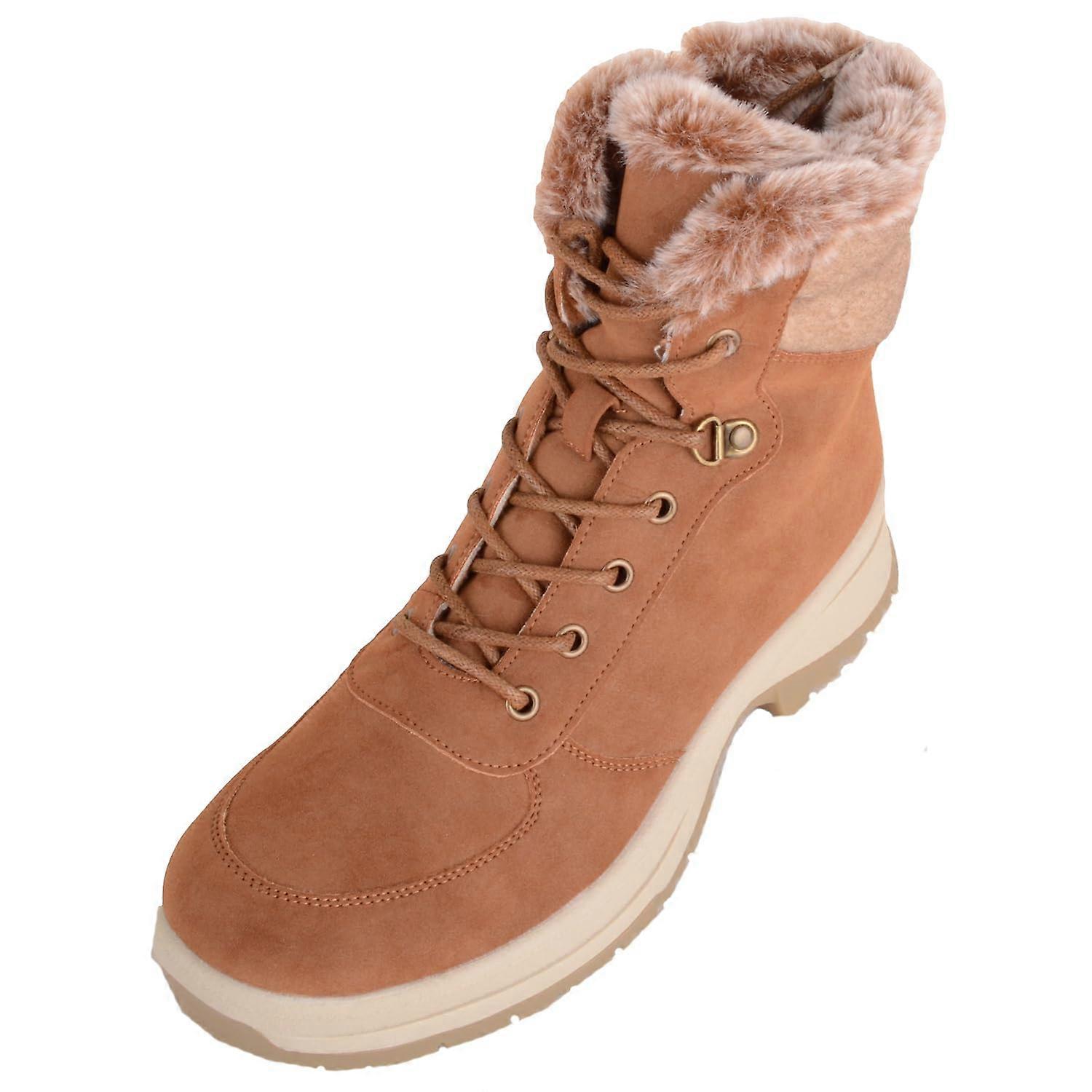 Absolute Footwear Faux Suede Lace Up Ankle Boot with Faux Fur Trim and Chunky Sole
