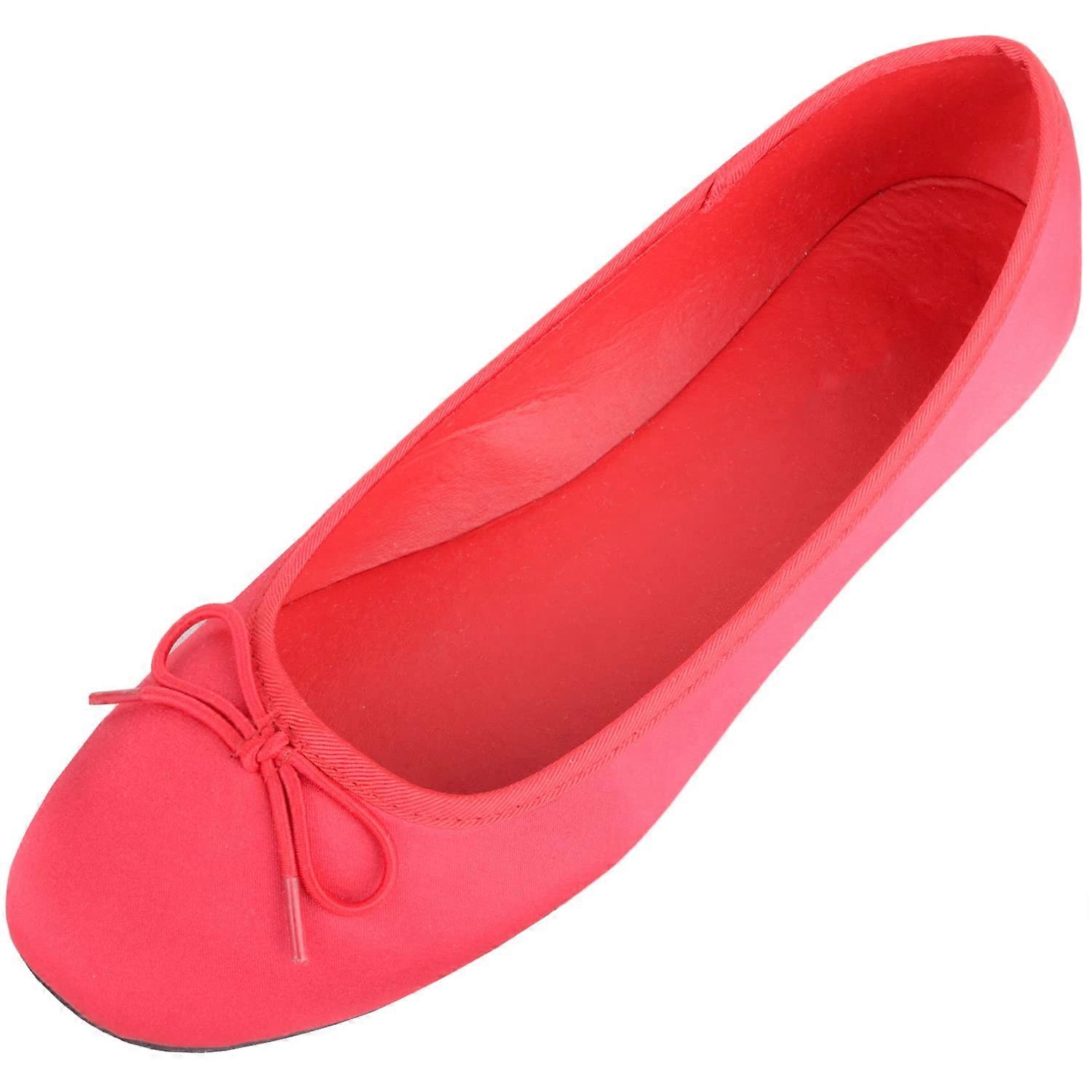 Absolute Footwear Easy Slip On Satin Look Bow Ballerina Pumps Shoes