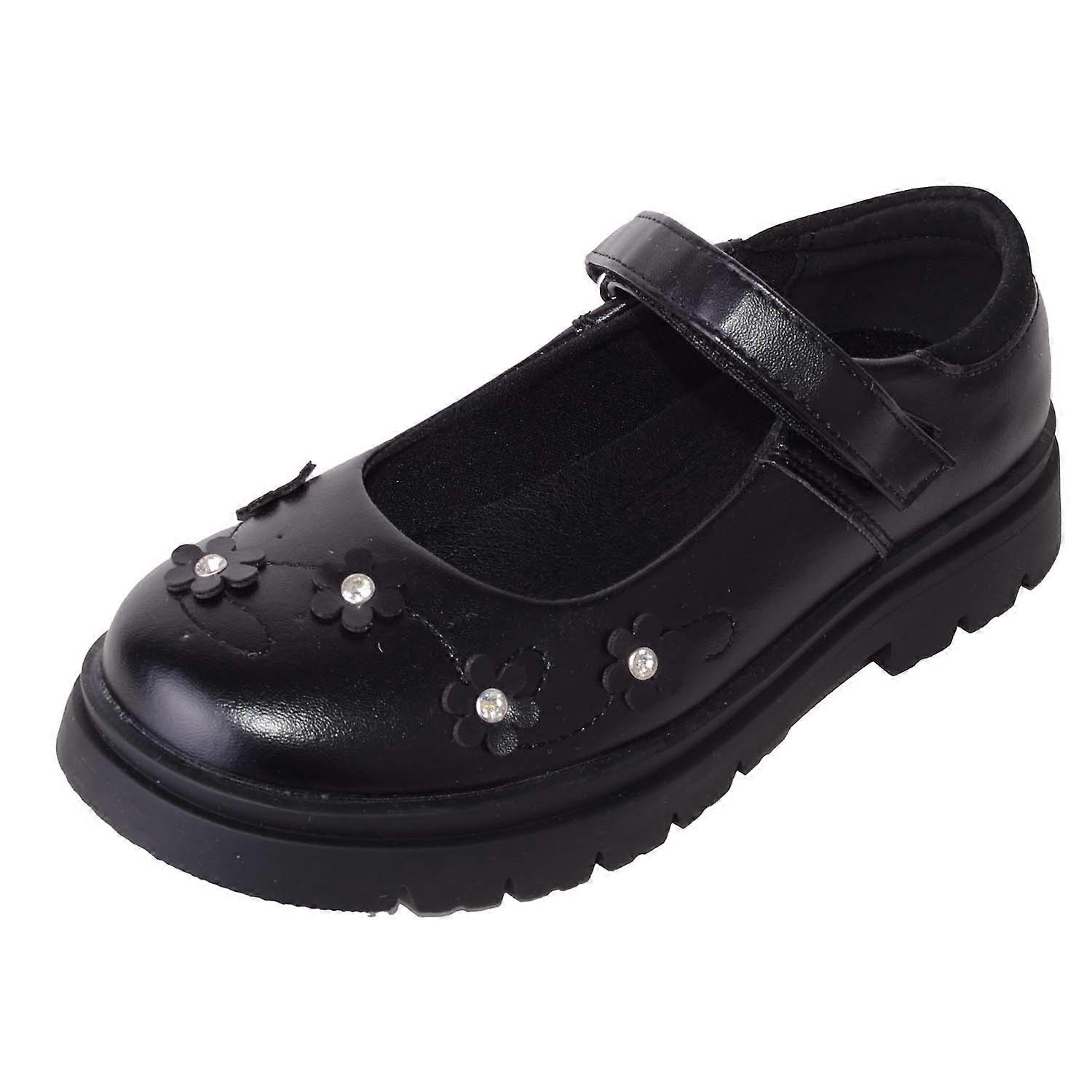 Absolute Footwear Childrens Faux Leather Touch and Close Floral Mary Jane Shoes