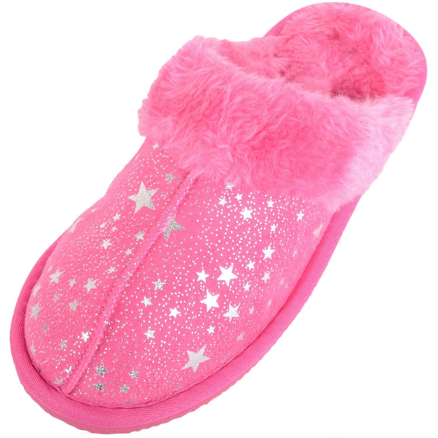 Absolute Footwear Childrens Slip On Open Back Faux Fur Mule Slippers with Star Design