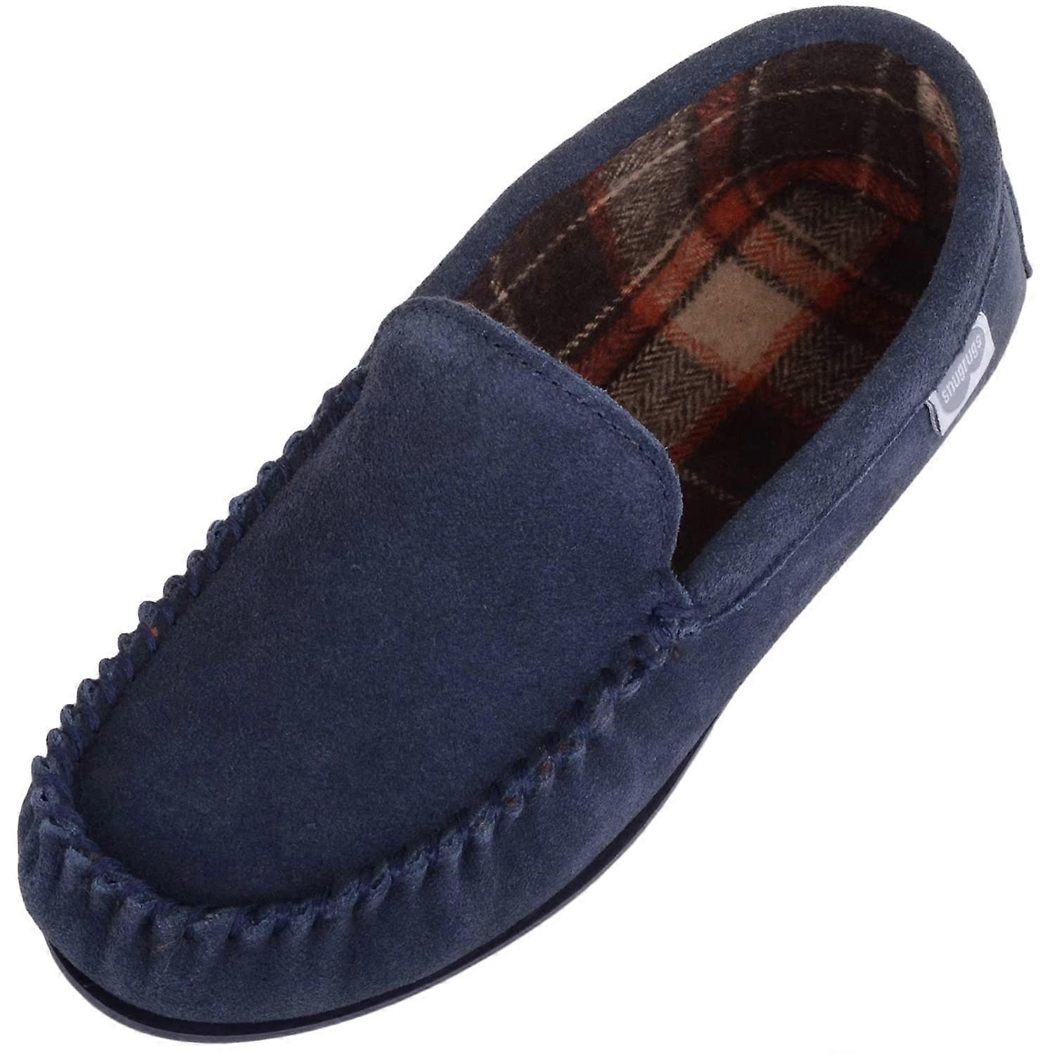 SnugRugs Leo, Suede Loafer Moccasin Slippers with Checked Cotton Inner and Rubber Sole