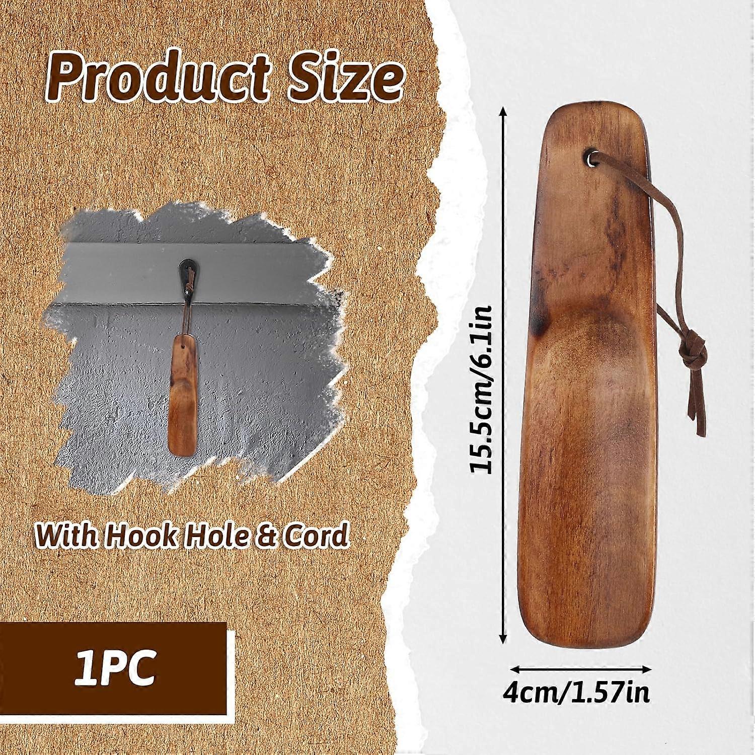 Short Handle Wood Shoe horn with Leather Strap - Comfortable Aid for Seniors, Pregnancy & Daily Use