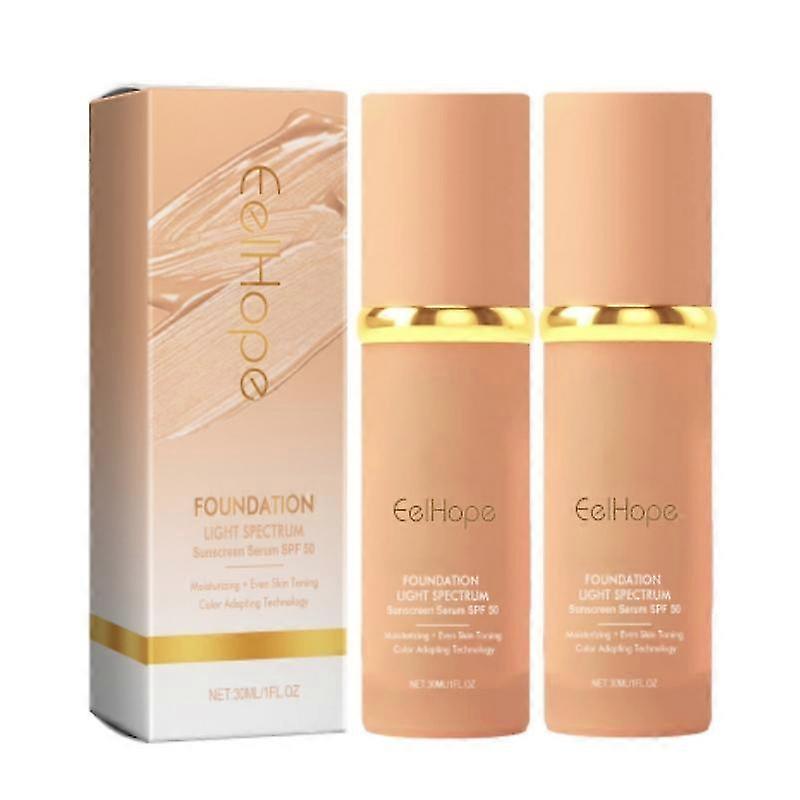 2pcs Color Changing Light Spectrum SPF50 Concealer Liquid Foundation, Long-lasting Full Coverage Hydrating Waterproof Base Cosmetics
