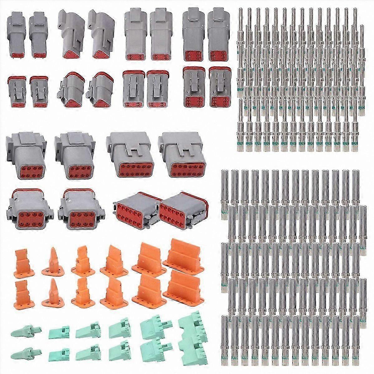 188PCS Gray Connector Kit with 16 Solid Contacts, DT Series, 2-12 Pin Configurations