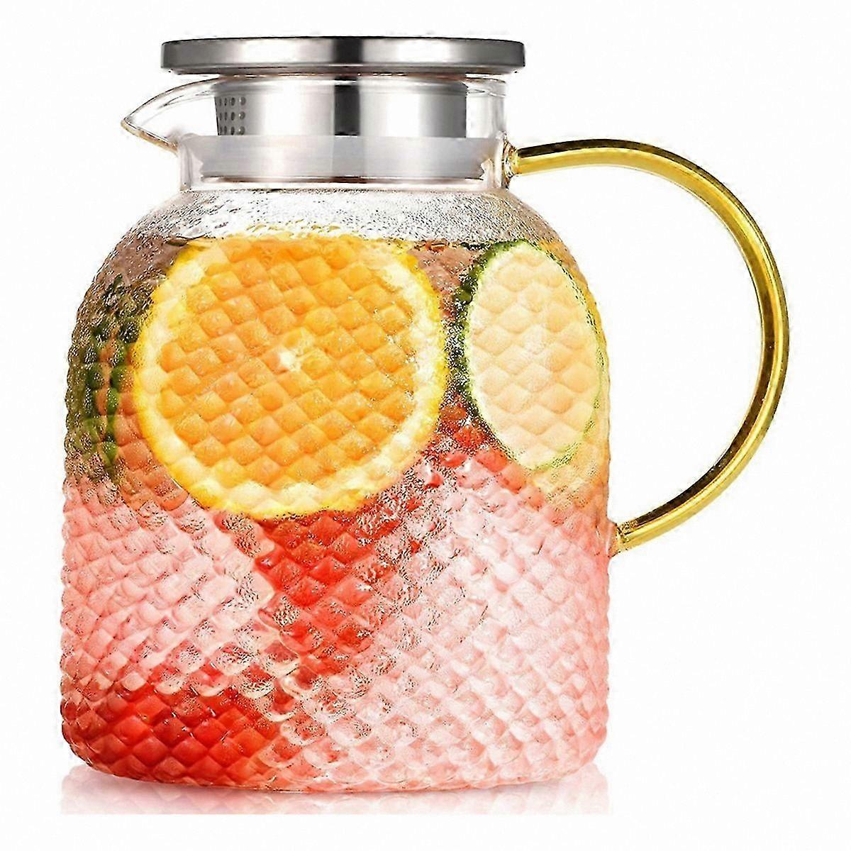 1.5L Glass Water Jug with Lid and Spout, 50oz Iced Tea Dispenser, BPA-Free Beverage Container for Home and Office Use