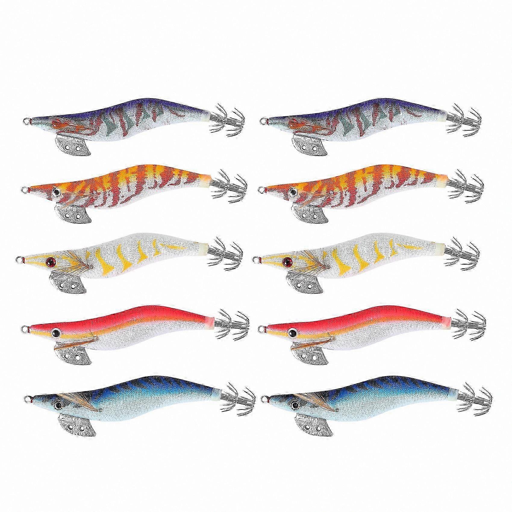 10 Pieces Wooden Shrimp Fishing Lures 12cm 3.0# Octopus Cuttlefish Baits with Storage Box for Anglers