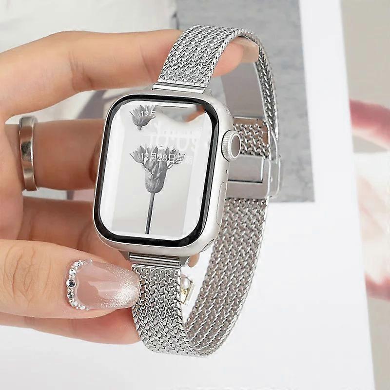 Magnetic Folding Loop Band For Apple Watch 9 8 7 41mm 45mm Slim Women Stainless Steel Strap For iwatch SE 6 5 4 40/44mm 38/42mm