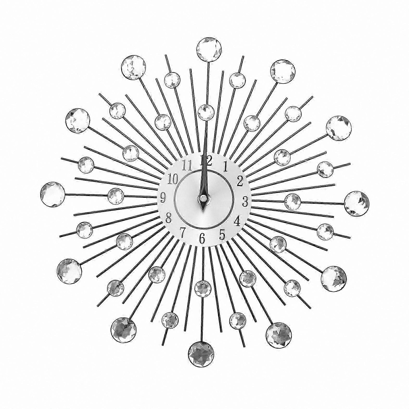 Crystal Sun Wall Clock Vintage Metal Art Luxury Diamond Modern Large Clock Design Home Decor Wall Hanging Timepiece Statement Piece for Living Room Of