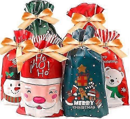 Christmas Drawstring Gift Bags Multipack - 30 PCS Christmas Bags Medium Small Sizes for Presents 6 Design Drawstring Gift Bags for Xmas Party (01#) Ed
