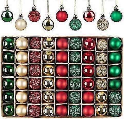 Christmas Baubles - 54Pcs Mini Ball Ornaments With Strings, 30mm/1.18-Inch Small Shatterproof Xmas Tree Decorations (Red, Green, Gold) Edition 1205