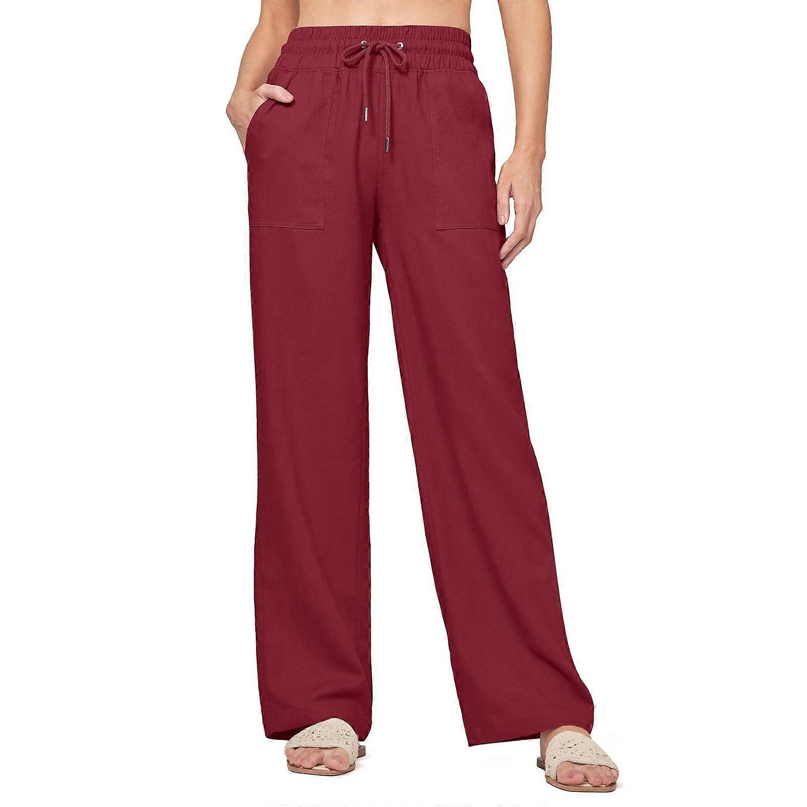 Women Linen Pants Wide Leg Casual Palazzo Pants Cotton Linen Lounge Beach Summer Pants with Pockets Burgundy XS