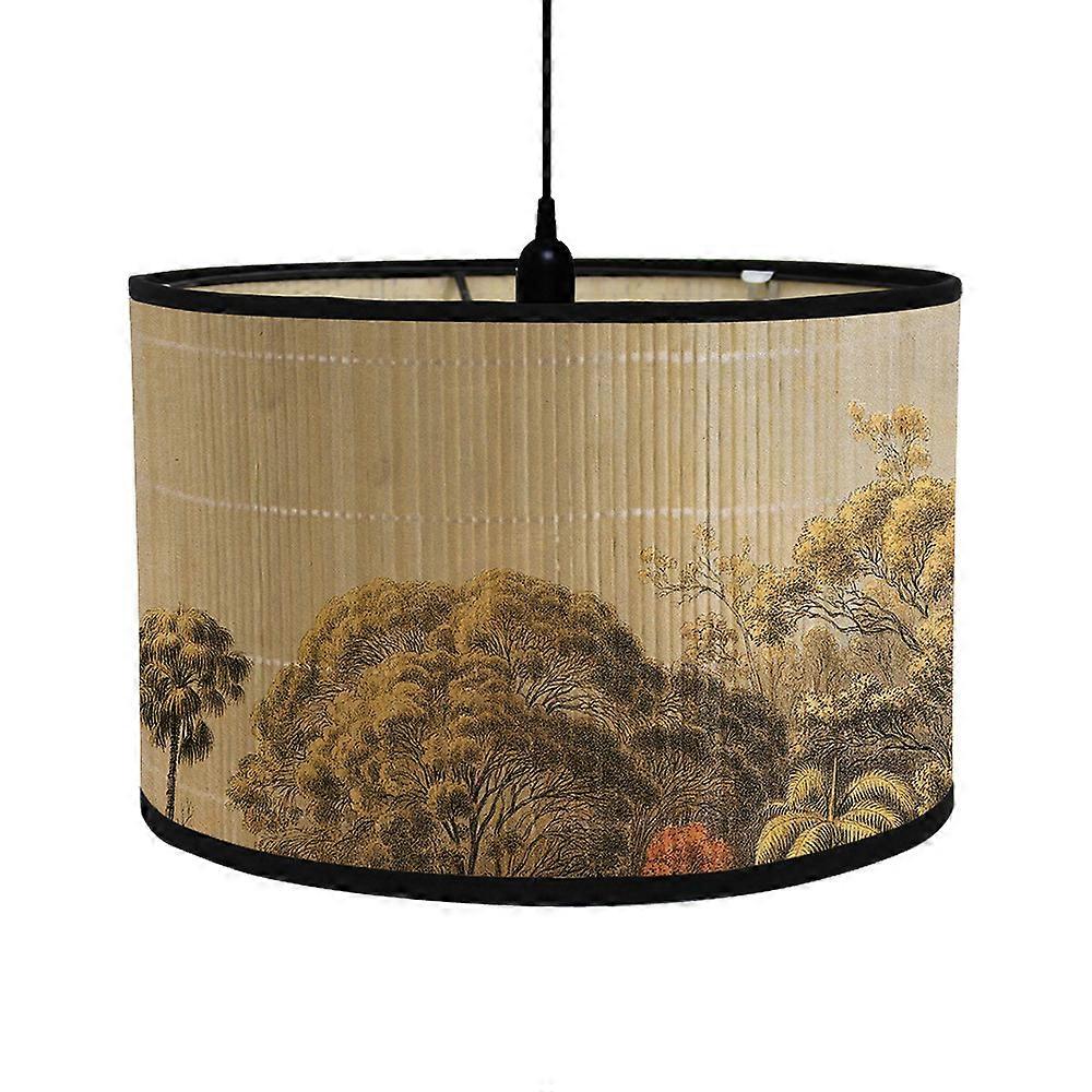 Vintage European Lampshade Home Mandala Folk House Hanging Chandelier Lampshade Green Plant Floral Pattern Bamboo Light Cover
