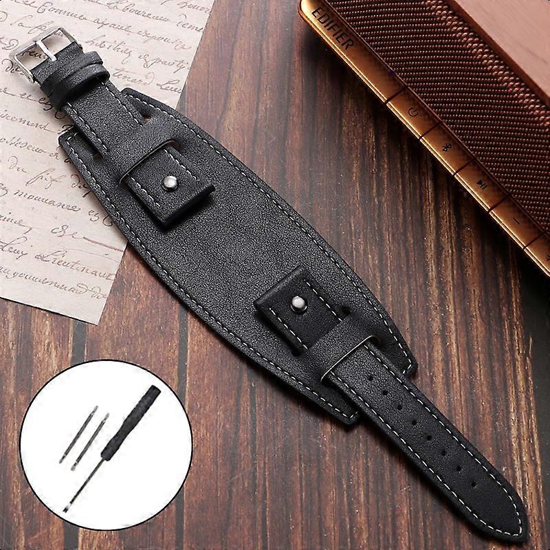 Leather Watchband with Mat Bund Base Tray 20mm 22mm 24mm Vintage Cowhide Leather Bracelets Black Brown Strap Men Women Wristband